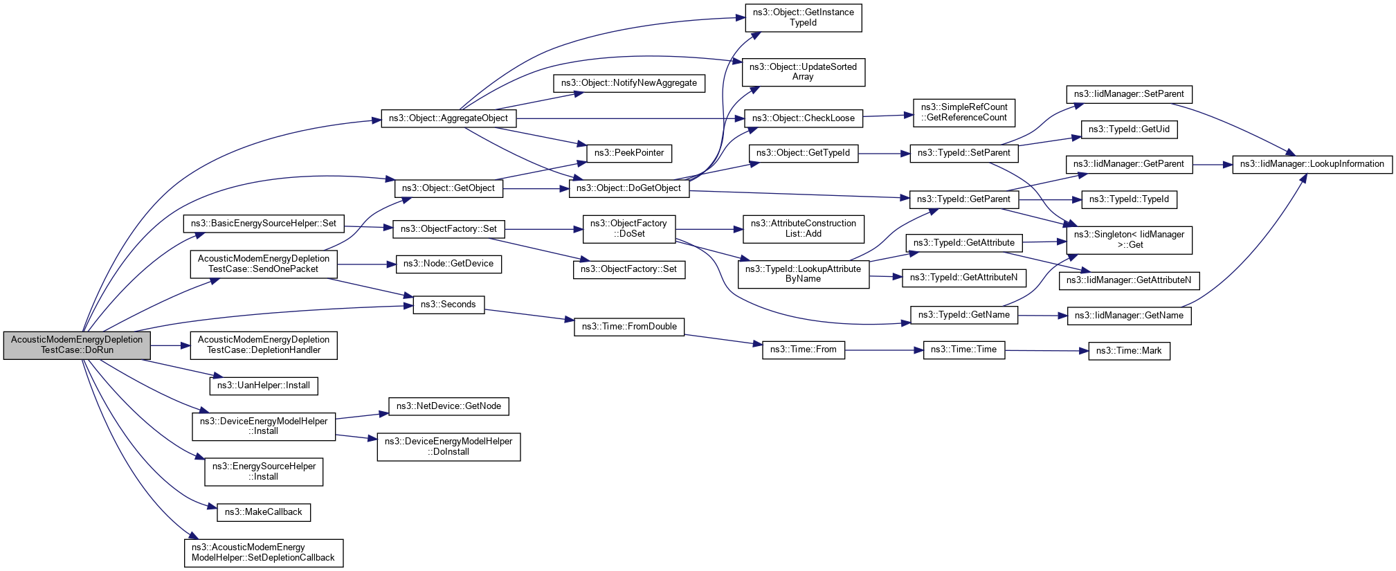 References ns3::Object::AggregateObject(), third::channel, DepletionHandler(), ns3::Object::GetObject(), ns3::UanHelper::Install(), ns3::DeviceEnergyModelHelper::Install(), ns3::EnergySourceHelper::Install(), m_callbackCount, m_node, m_simTime, ns3::MakeCallback(), third::mobility, NS_TEST_ASSERT_MSG_EQ, ns3::Seconds(), SendOnePacket(), ns3::BasicEnergySourceHelper::Set(), and ns3::AcousticModemEnergyModelHelper::SetDepletionCallback().