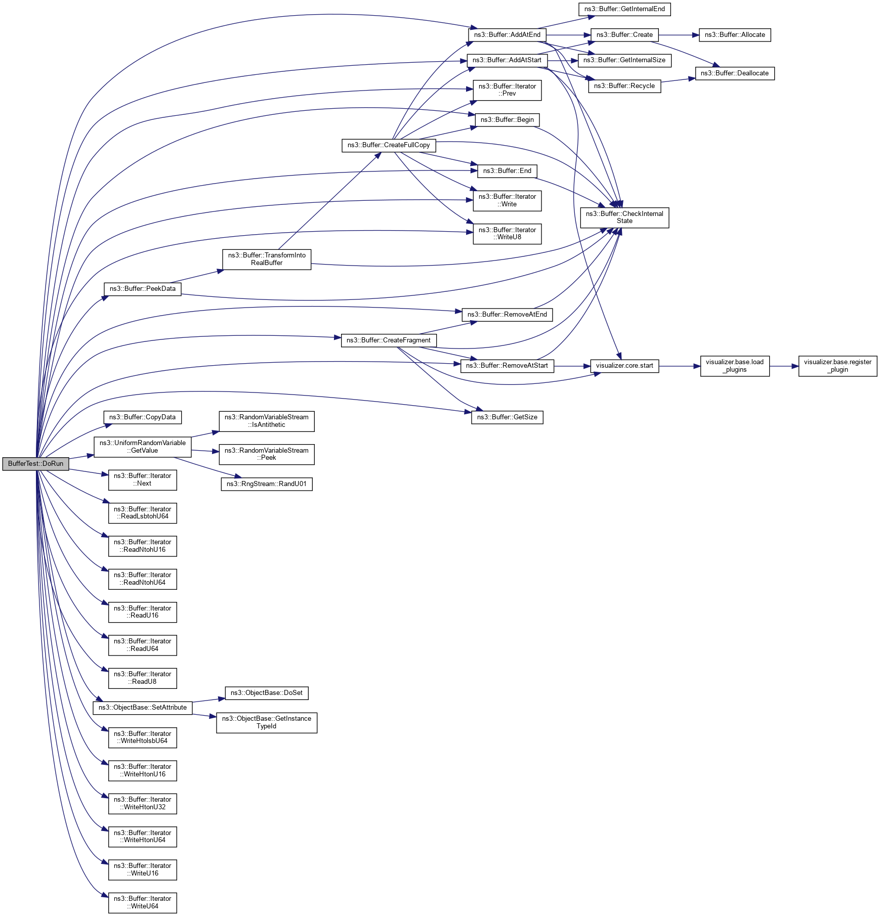 References ns3::Buffer::AddAtEnd(), ns3::Buffer::AddAtStart(), ns3::Buffer::Begin(), ns3::Buffer::CopyData(), ns3::Buffer::CreateFragment(), ns3::Buffer::End(), ENSURE_WRITTEN_BYTES, ns3::Buffer::GetSize(), ns3::UniformRandomVariable::GetValue(), ns3::Buffer::Iterator::Next(), NS_TEST_ASSERT_MSG_EQ, NS_TEST_ASSERT_MSG_NE, NS_TEST_EXPECT_MSG_EQ, ns3::Buffer::PeekData(), ns3::Buffer::Iterator::Prev(), ns3::Buffer::Iterator::ReadLsbtohU64(), ns3::Buffer::Iterator::ReadNtohU16(), ns3::Buffer::Iterator::ReadNtohU64(), ns3::Buffer::Iterator::ReadU16(), ns3::Buffer::Iterator::ReadU64(), ns3::Buffer::Iterator::ReadU8(), ns3::Buffer::RemoveAtEnd(), ns3::Buffer::RemoveAtStart(), ns3::ObjectBase::SetAttribute(), ns3::Buffer::Iterator::Write(), ns3::Buffer::Iterator::WriteHtolsbU64(), ns3::Buffer::Iterator::WriteHtonU16(), ns3::Buffer::Iterator::WriteHtonU32(), ns3::Buffer::Iterator::WriteHtonU64(), ns3::Buffer::Iterator::WriteU16(), ns3::Buffer::Iterator::WriteU64(), and ns3::Buffer::Iterator::WriteU8().