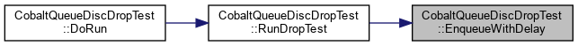Here is the caller graph for this function:| void CobaltQueueDiscDropTest::EnqueueWithDelay | ( | Ptr< CobaltQueueDisc > | queue, |