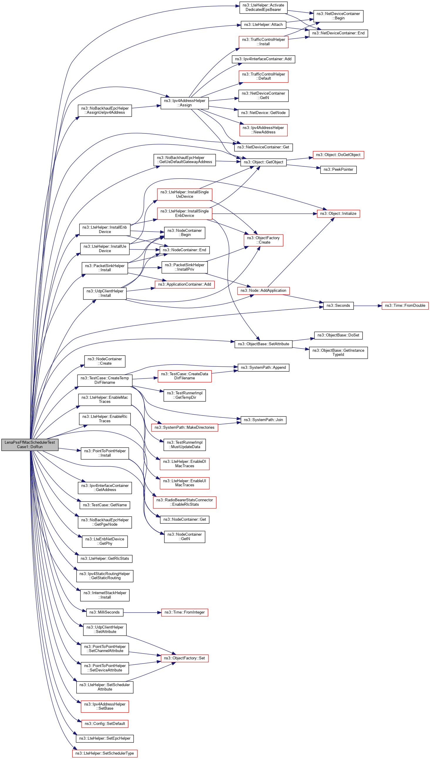 References ns3::LteHelper::ActivateDedicatedEpsBearer(), ns3::Ipv4AddressHelper::Assign(), ns3::NoBackhaulEpcHelper::AssignUeIpv4Address(), ns3::LteHelper::Attach(), first::clientApps, ns3::NodeContainer::Create(), ns3::TestCase::CreateTempDirFilename(), data, ns3::LteHelper::EnableMacTraces(), ns3::LteHelper::EnableRlcTraces(), ns3::GbrQosInformation::gbrDl, ns3::GbrQosInformation::gbrUl, ns3::NetDeviceContainer::Get(), ns3::NodeContainer::Get(), ns3::Ipv4InterfaceContainer::GetAddress(), ns3::NodeContainer::GetN(), ns3::TestCase::GetName(), ns3::Object::GetObject(), ns3::NoBackhaulEpcHelper::GetPgwNode(), ns3::LteEnbNetDevice::GetPhy(), ns3::LteHelper::GetRlcStats(), ns3::Ipv4StaticRoutingHelper::GetStaticRouting(), ns3::NoBackhaulEpcHelper::GetUeDefaultGatewayAddress(), ns3::UdpClientHelper::Install(), ns3::PointToPointHelper::Install(), ns3::PacketSinkHelper::Install(), ns3::InternetStackHelper::Install(), ns3::LteHelper::InstallEnbDevice(), ns3::LteHelper::InstallUeDevice(), m_dist, m_errorModelEnabled, m_interval, m_nUser, m_packetSize, m_thrRefDl, m_thrRefUl, ns3::GbrQosInformation::mbrDl, ns3::GbrQosInformation::mbrUl, ns3::MilliSeconds(), third::mobility, NS_LOG_FUNCTION, NS_LOG_INFO, NS_TEST_ASSERT_MSG_EQ_TOL, ns3::Seconds(), first::serverApps, ns3::UdpClientHelper::SetAttribute(), ns3::ObjectBase::SetAttribute(), ns3::Ipv4AddressHelper::SetBase(), ns3::PointToPointHelper::SetChannelAttribute(), ns3::Config::SetDefault(), ns3::PointToPointHelper::SetDeviceAttribute(), ns3::LteHelper::SetEpcHelper(), ns3::LteHelper::SetSchedulerAttribute(), and ns3::LteHelper::SetSchedulerType().