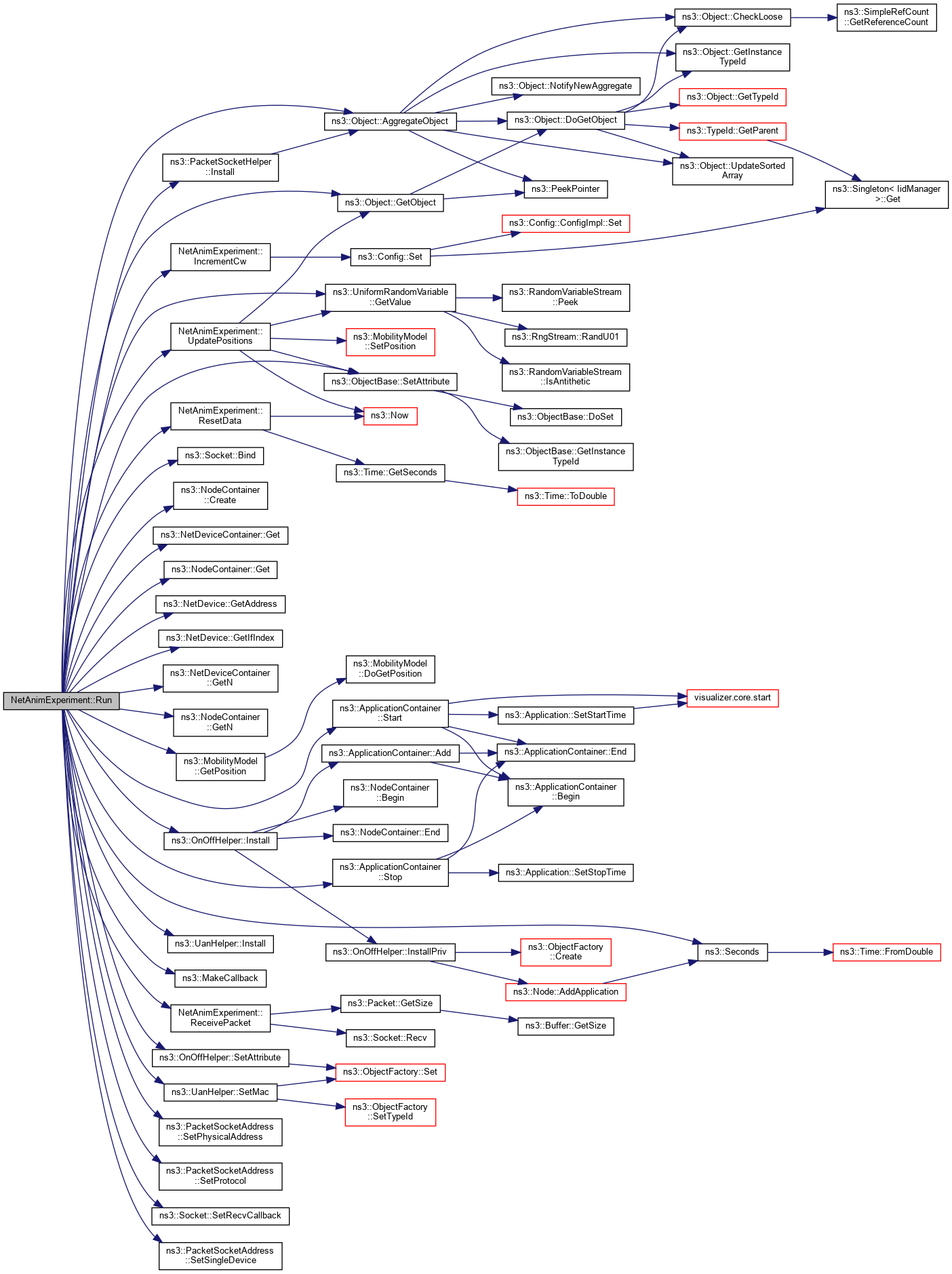 Here is the caller graph for this function:| void NetAnimExperiment::Run | ( | UanHelper & | uan | ) |