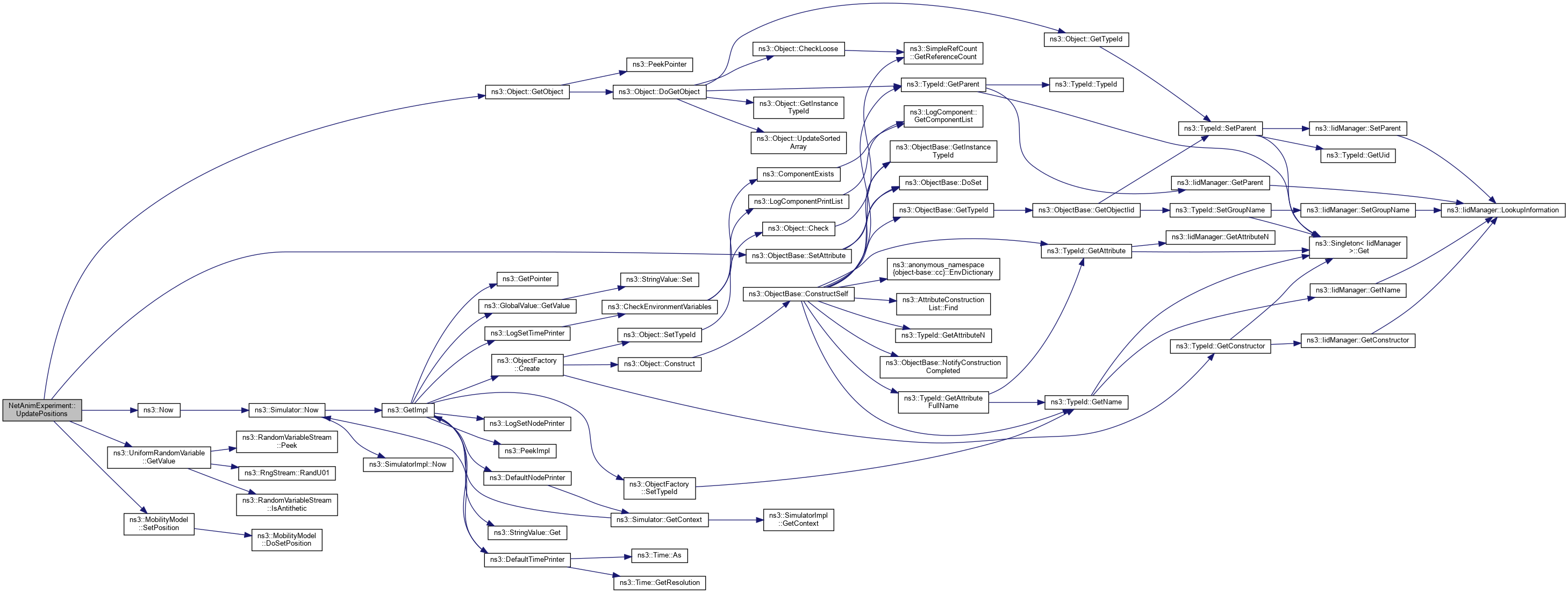 Here is the call graph for this function:| void NetAnimExperiment::UpdatePositions | ( | NodeContainer & | nodes | ) |