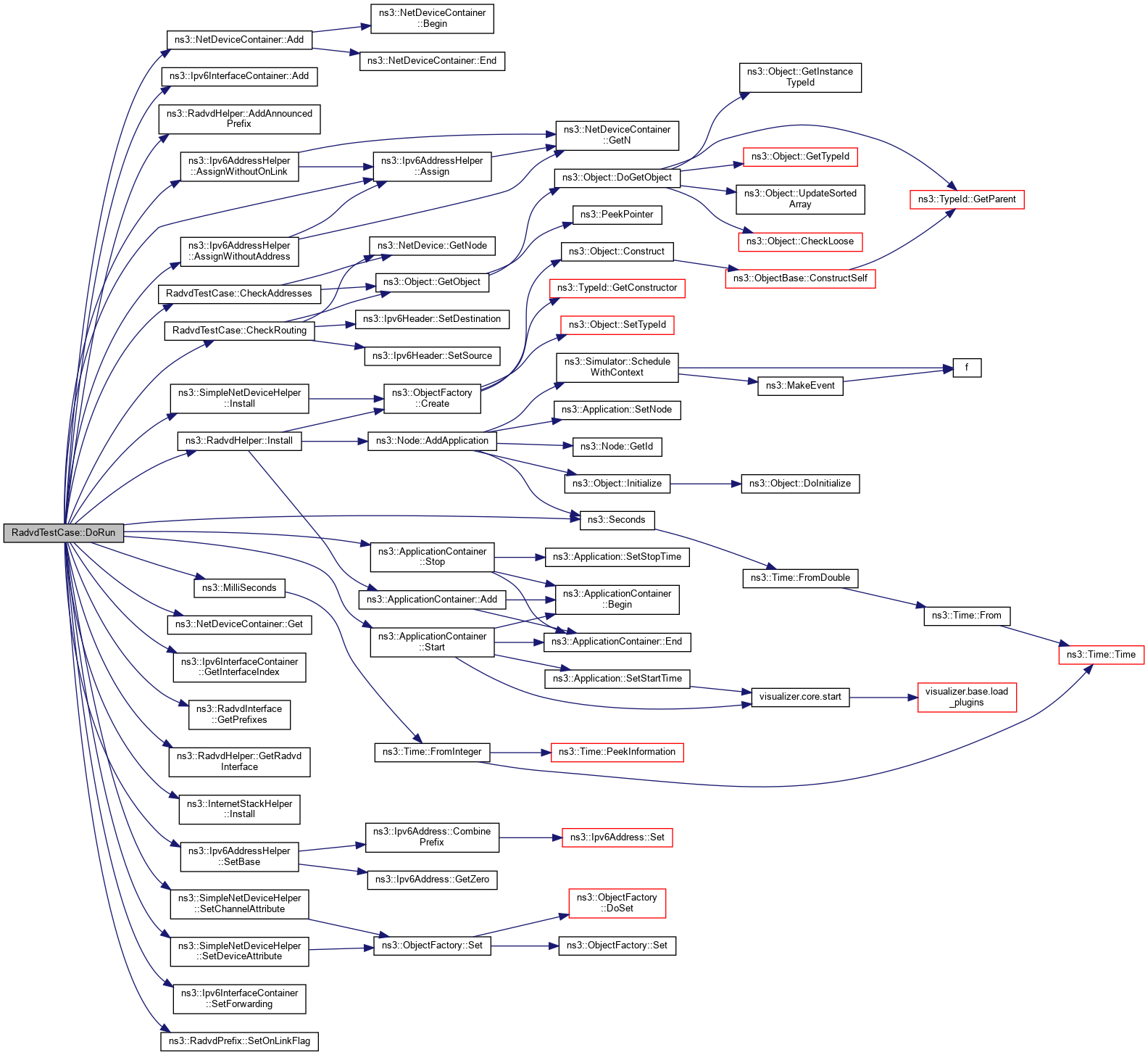 References ns3::NetDeviceContainer::Add(), ns3::Ipv6InterfaceContainer::Add(), ns3::RadvdHelper::AddAnnouncedPrefix(), ns3::Ipv6AddressHelper::Assign(), ns3::Ipv6AddressHelper::AssignWithoutAddress(), ns3::Ipv6AddressHelper::AssignWithoutOnLink(), CheckAddresses(), CheckRouting(), ns3::NetDeviceContainer::Get(), ns3::Ipv6InterfaceContainer::GetInterfaceIndex(), ns3::RadvdInterface::GetPrefixes(), ns3::RadvdHelper::GetRadvdInterface(), ns3::RadvdHelper::Install(), ns3::SimpleNetDeviceHelper::Install(), ns3::InternetStackHelper::Install(), m_addresses, m_routes, m_routingResults, ns3::MilliSeconds(), NS_TEST_ASSERT_MSG_EQ, ns3::Seconds(), ns3::Ipv6AddressHelper::SetBase(), ns3::SimpleNetDeviceHelper::SetChannelAttribute(), ns3::SimpleNetDeviceHelper::SetDeviceAttribute(), ns3::Ipv6InterfaceContainer::SetForwarding(), ns3::RadvdPrefix::SetOnLinkFlag(), ns3::ApplicationContainer::Start(), and ns3::ApplicationContainer::Stop().