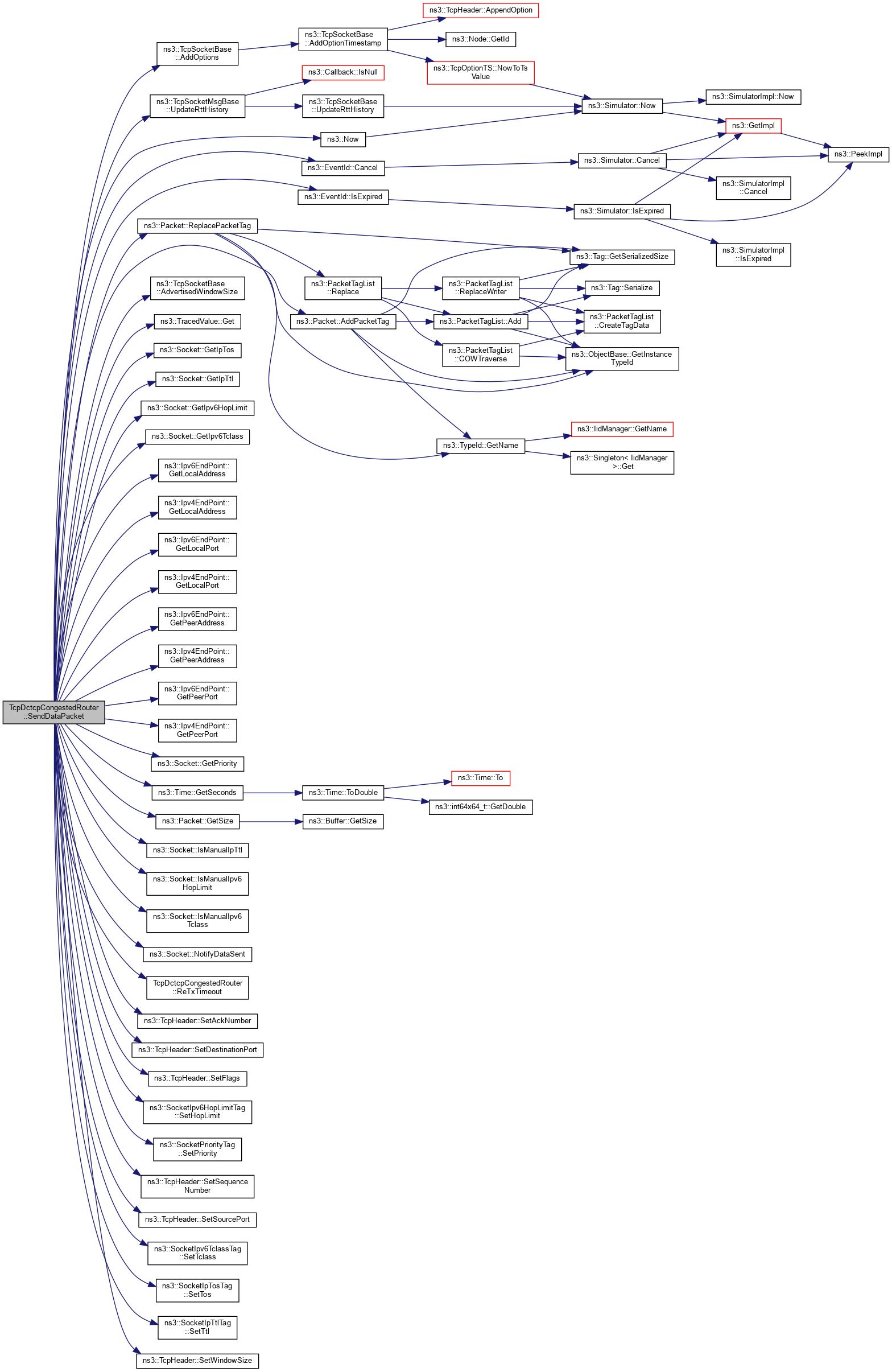 References ns3::TcpSocketBase::AddOptions(), ns3::Packet::AddPacketTag(), ns3::TcpSocketBase::AdvertisedWindowSize(), ns3::EventId::Cancel(), ns3::TcpSocket::CLOSE_WAIT, ns3::TcpSocket::ESTABLISHED, ns3::TcpSocket::FIN_WAIT_1, ns3::TracedValue< T >::Get(), ns3::Socket::GetIpTos(), ns3::Socket::GetIpTtl(), ns3::Socket::GetIpv6HopLimit(), ns3::Socket::GetIpv6Tclass(), ns3::Ipv6EndPoint::GetLocalAddress(), ns3::Ipv4EndPoint::GetLocalAddress(), ns3::Ipv6EndPoint::GetLocalPort(), ns3::Ipv4EndPoint::GetLocalPort(), ns3::Ipv6EndPoint::GetPeerAddress(), ns3::Ipv4EndPoint::GetPeerAddress(), ns3::Ipv6EndPoint::GetPeerPort(), ns3::Ipv4EndPoint::GetPeerPort(), ns3::Socket::GetPriority(), ns3::Time::GetSeconds(), ns3::Packet::GetSize(), ns3::EventId::IsExpired(), ns3::Socket::IsManualIpTtl(), ns3::Socket::IsManualIpv6HopLimit(), ns3::Socket::IsManualIpv6Tclass(), ns3::TcpSocket::LAST_ACK, ns3::Socket::m_boundnetdevice, ns3::TcpSocketBase::m_closeOnEmpty, ns3::TcpSocketBase::m_congestionControl, ns3::TcpSocketState::m_congState, ns3::TcpSocketState::m_cWnd, m_dataPacketSent, ns3::TcpSocketBase::m_delAckCount, ns3::TcpSocketBase::m_delAckEvent, ns3::TcpSocketBase::m_ecnCWRSeq, ns3::TcpSocketBase::m_ecnEchoSeq, ns3::TcpSocketState::m_ecnState, ns3::TcpSocketBase::m_endPoint, ns3::TcpSocketBase::m_endPoint6, ns3::TcpSocketState::m_highTxMark, ns3::TcpSocketBase::m_retxEvent, ns3::TcpSocketBase::m_rto, ns3::TcpSocketState::m_rxBuffer, ns3::TcpSocketState::m_ssThresh, ns3::TcpSocketBase::m_state, ns3::TcpSocketBase::m_tcb, ns3::TcpSocketBase::m_tcp, m_testCase, ns3::TcpSocketBase::m_txBuffer, ns3::TcpSocketBase::m_txTrace, max, ns3::Socket::NotifyDataSent(), ns3::Now(), NS_LOG_DEBUG, NS_LOG_FUNCTION, NS_LOG_INFO, NS_LOG_LOGIC, ns3::Packet::ReplacePacketTag(), ReTxTimeout(), ns3::TcpHeader::SetAckNumber(), ns3::TcpHeader::SetDestinationPort(), ns3::TcpHeader::SetFlags(), ns3::SocketIpv6HopLimitTag::SetHopLimit(), ns3::SocketPriorityTag::SetPriority(), ns3::TcpHeader::SetSequenceNumber(), ns3::TcpHeader::SetSourcePort(), ns3::SocketIpv6TclassTag::SetTclass(), ns3::SocketIpTosTag::SetTos(), ns3::SocketIpTtlTag::SetTtl(), ns3::TcpHeader::SetWindowSize(), and ns3::TcpSocketMsgBase::UpdateRttHistory().