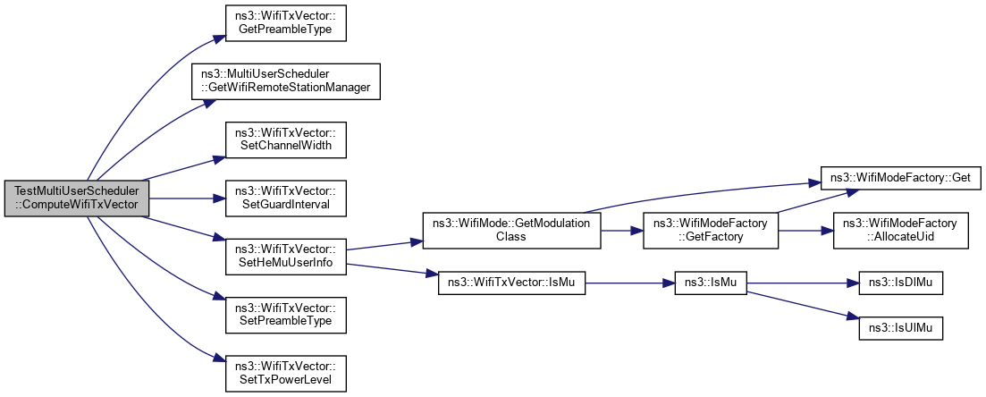 References ns3::WifiTxVector::GetPreambleType(), ns3::MultiUserScheduler::GetWifiRemoteStationManager(), ns3::MultiUserScheduler::m_apMac, m_txVector, NS_ABORT_MSG, NS_ABORT_MSG_IF, ns3::WifiTxVector::SetChannelWidth(), ns3::WifiTxVector::SetGuardInterval(), ns3::WifiTxVector::SetHeMuUserInfo(), ns3::WifiTxVector::SetPreambleType(), ns3::WifiTxVector::SetTxPowerLevel(), and ns3::WIFI_PREAMBLE_HE_MU.