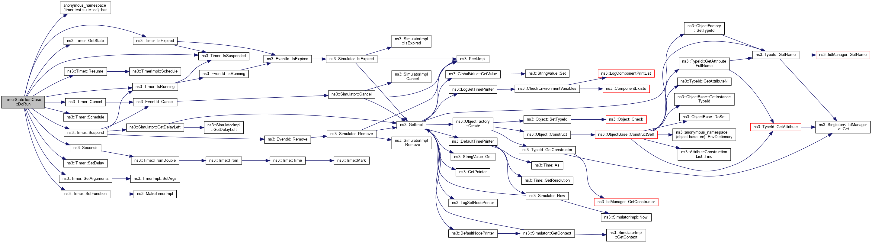 References anonymous_namespace{timer-test-suite.cc}::bari(), ns3::Timer::Cancel(), ns3::Timer::GetState(), ns3::Timer::IsExpired(), ns3::Timer::IsRunning(), ns3::Timer::IsSuspended(), NS_TEST_ASSERT_MSG_EQ, ns3::Timer::Resume(), ns3::Timer::Schedule(), ns3::Seconds(), ns3::Timer::SetArguments(), ns3::Timer::SetDelay(), ns3::Timer::SetFunction(), and ns3::Timer::Suspend().
