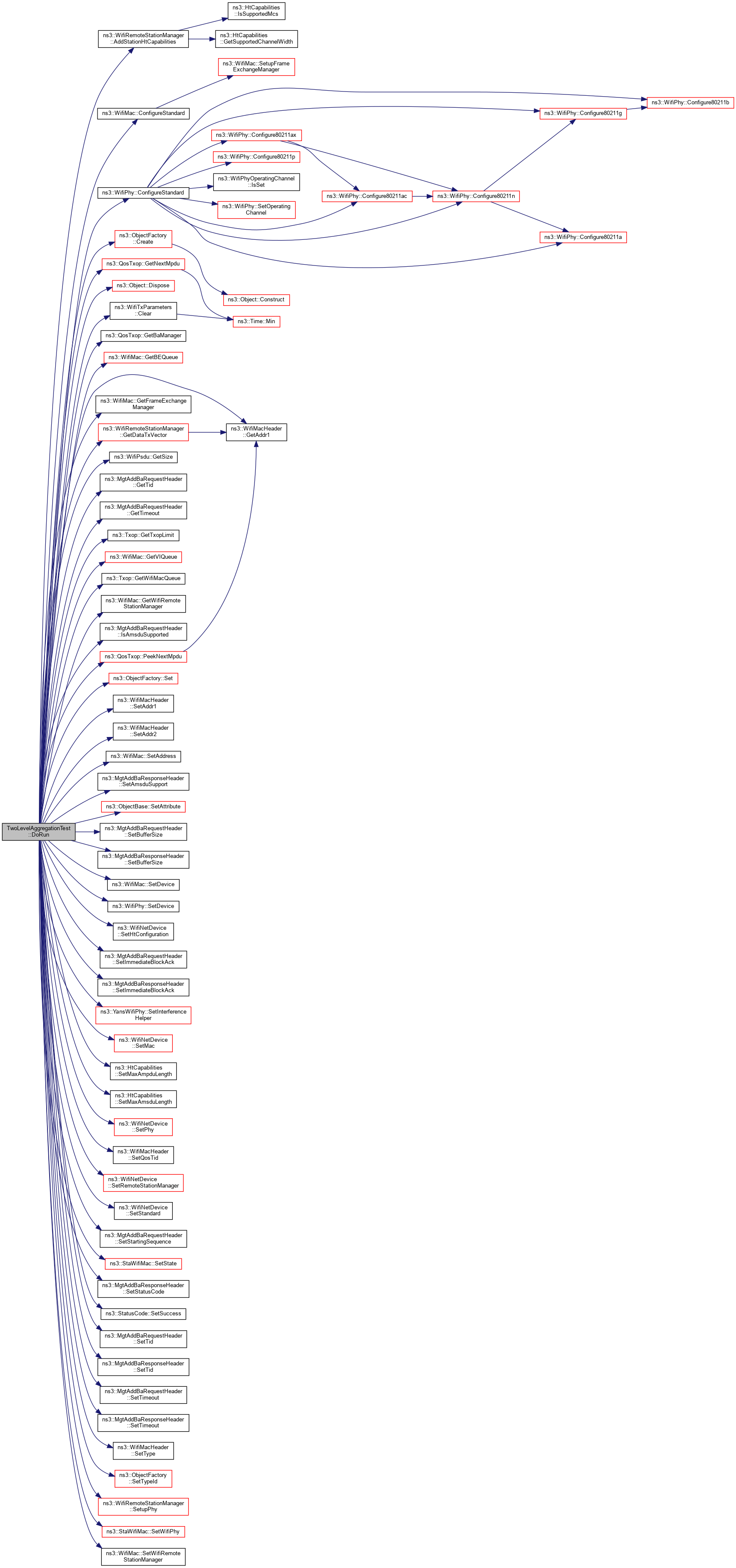 References ns3::WifiRemoteStationManager::AddStationHtCapabilities(), ns3::ASSOCIATED, ns3::WifiTxParameters::Clear(), ns3::WifiMac::ConfigureStandard(), ns3::WifiPhy::ConfigureStandard(), ns3::ObjectFactory::Create(), ns3::Object::Dispose(), ns3::WifiMacHeader::GetAddr1(), ns3::QosTxop::GetBaManager(), ns3::WifiMac::GetBEQueue(), ns3::WifiRemoteStationManager::GetDataTxVector(), ns3::WifiMac::GetFrameExchangeManager(), ns3::QosTxop::GetNextMpdu(), ns3::WifiPsdu::GetSize(), ns3::MgtAddBaRequestHeader::GetTid(), ns3::MgtAddBaRequestHeader::GetTimeout(), ns3::Txop::GetTxopLimit(), ns3::WifiMac::GetVIQueue(), ns3::Txop::GetWifiMacQueue(), ns3::WifiMac::GetWifiRemoteStationManager(), ns3::MgtAddBaRequestHeader::IsAmsduSupported(), m_device, m_factory, m_mac, m_manager, m_phy, ns3::WifiTxParameters::m_txVector, Min, NS_TEST_EXPECT_MSG_EQ, ns3::QosTxop::PeekNextMpdu(), test-ns3::result, ns3::ObjectFactory::Set(), ns3::WifiMacHeader::SetAddr1(), ns3::WifiMacHeader::SetAddr2(), ns3::WifiMac::SetAddress(), ns3::MgtAddBaResponseHeader::SetAmsduSupport(), ns3::ObjectBase::SetAttribute(), ns3::MgtAddBaRequestHeader::SetBufferSize(), ns3::MgtAddBaResponseHeader::SetBufferSize(), ns3::WifiMac::SetDevice(), ns3::WifiPhy::SetDevice(), ns3::WifiNetDevice::SetHtConfiguration(), ns3::MgtAddBaRequestHeader::SetImmediateBlockAck(), ns3::MgtAddBaResponseHeader::SetImmediateBlockAck(), ns3::YansWifiPhy::SetInterferenceHelper(), ns3::WifiNetDevice::SetMac(), ns3::HtCapabilities::SetMaxAmpduLength(), ns3::HtCapabilities::SetMaxAmsduLength(), ns3::WifiNetDevice::SetPhy(), ns3::WifiMacHeader::SetQosTid(), ns3::WifiNetDevice::SetRemoteStationManager(), ns3::WifiNetDevice::SetStandard(), ns3::MgtAddBaRequestHeader::SetStartingSequence(), ns3::StaWifiMac::SetState(), ns3::MgtAddBaResponseHeader::SetStatusCode(), ns3::StatusCode::SetSuccess(), ns3::MgtAddBaRequestHeader::SetTid(), ns3::MgtAddBaResponseHeader::SetTid(), ns3::MgtAddBaRequestHeader::SetTimeout(), ns3::MgtAddBaResponseHeader::SetTimeout(), ns3::WifiMacHeader::SetType(), ns3::ObjectFactory::SetTypeId(), ns3::WifiRemoteStationManager::SetupPhy(), ns3::StaWifiMac::SetWifiPhy(), ns3::WifiMac::SetWifiRemoteStationManager(), ns3::WIFI_MAC_QOSDATA, and ns3::WIFI_STANDARD_80211n.