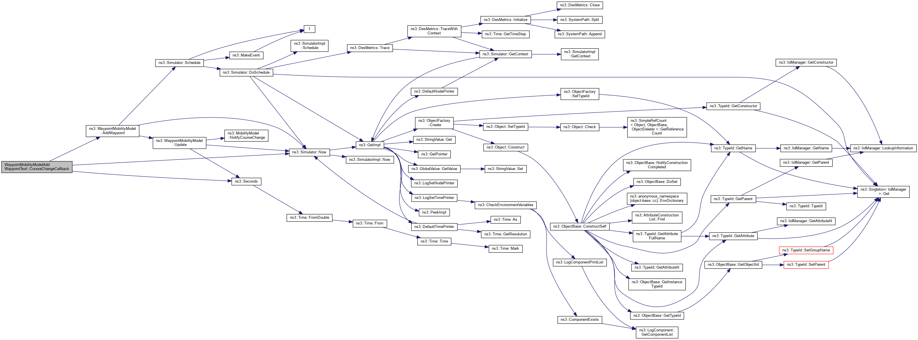 References ns3::WaypointMobilityModel::AddWaypoint(), CourseChangeCallback(), ns3::ObjectFactory::Create(), ns3::Simulator::Destroy(), ns3::Object::GetObject(), ns3::Object::Initialize(), ns3::MakeCallback(), ns3::Simulator::Run(), ns3::Simulator::Schedule(), ns3::Seconds(), ns3::ObjectFactory::Set(), ns3::ObjectFactory::SetTypeId(), ns3::Simulator::Stop(), and ns3::ObjectBase::TraceConnectWithoutContext().