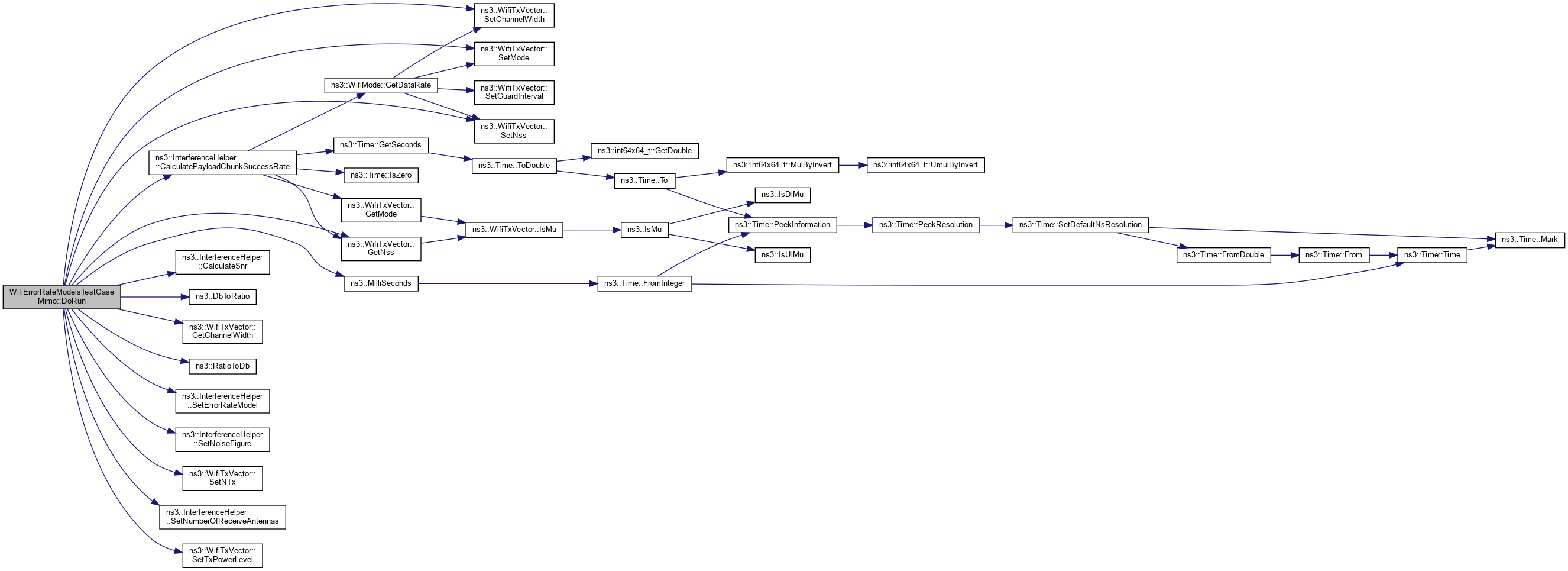 References ns3::InterferenceHelper::CalculatePayloadChunkSuccessRate(), ns3::InterferenceHelper::CalculateSnr(), ns3::DbToRatio(), ns3::WifiTxVector::GetChannelWidth(), ns3::WifiTxVector::GetNss(), ns3::MilliSeconds(), NS_TEST_ASSERT_MSG_EQ_TOL, NS_TEST_ASSERT_MSG_GT, ns3::RatioToDb(), ns3::WifiTxVector::SetChannelWidth(), ns3::InterferenceHelper::SetErrorRateModel(), ns3::WifiTxVector::SetMode(), ns3::InterferenceHelper::SetNoiseFigure(), ns3::WifiTxVector::SetNss(), ns3::WifiTxVector::SetNTx(), ns3::InterferenceHelper::SetNumberOfReceiveAntennas(), and ns3::WifiTxVector::SetTxPowerLevel().