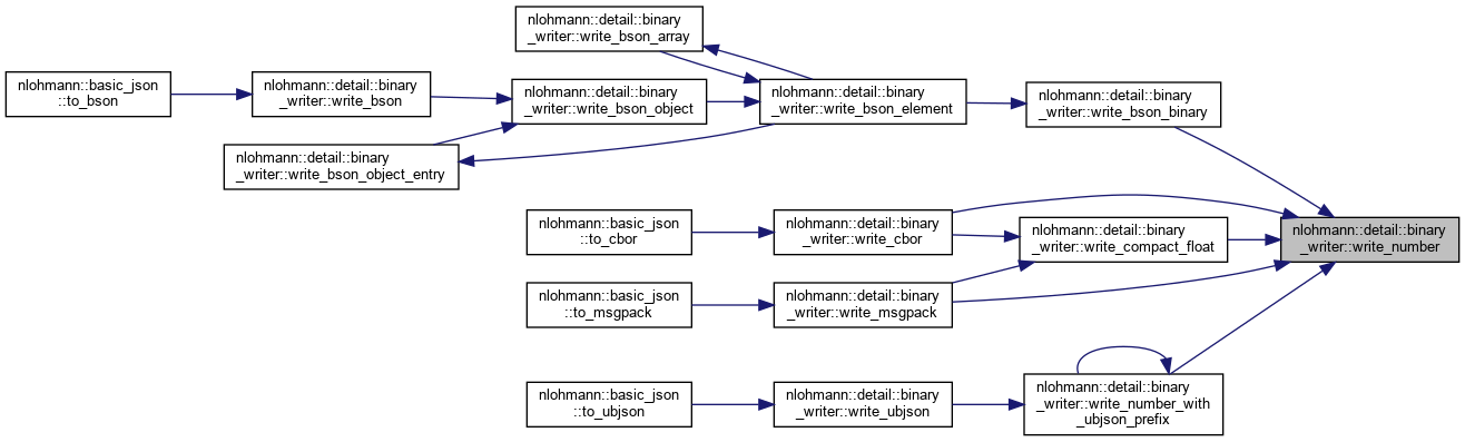 Referenced by nlohmann::detail::serializer< BasicJsonType >::for(), nlohmann::detail::binary_writer< BasicJsonType, CharType >::get_cbor_float_prefix(), nlohmann::detail::binary_writer< BasicJsonType, CharType >::get_msgpack_float_prefix(), nlohmann::detail::binary_writer< BasicJsonType, CharType >::write_bson_array(), nlohmann::detail::binary_writer< BasicJsonType, CharType >::write_bson_boolean(), nlohmann::detail::binary_writer< BasicJsonType, CharType >::write_bson_entry_header(), nlohmann::detail::binary_writer< BasicJsonType, CharType >::write_bson_object(), nlohmann::detail::binary_writer< BasicJsonType, CharType >::write_cbor(), nlohmann::detail::binary_writer< BasicJsonType, CharType >::write_msgpack(), nlohmann::detail::binary_writer< BasicJsonType, CharType >::write_number_with_ubjson_prefix(), and nlohmann::detail::binary_writer< BasicJsonType, CharType >::write_ubjson().