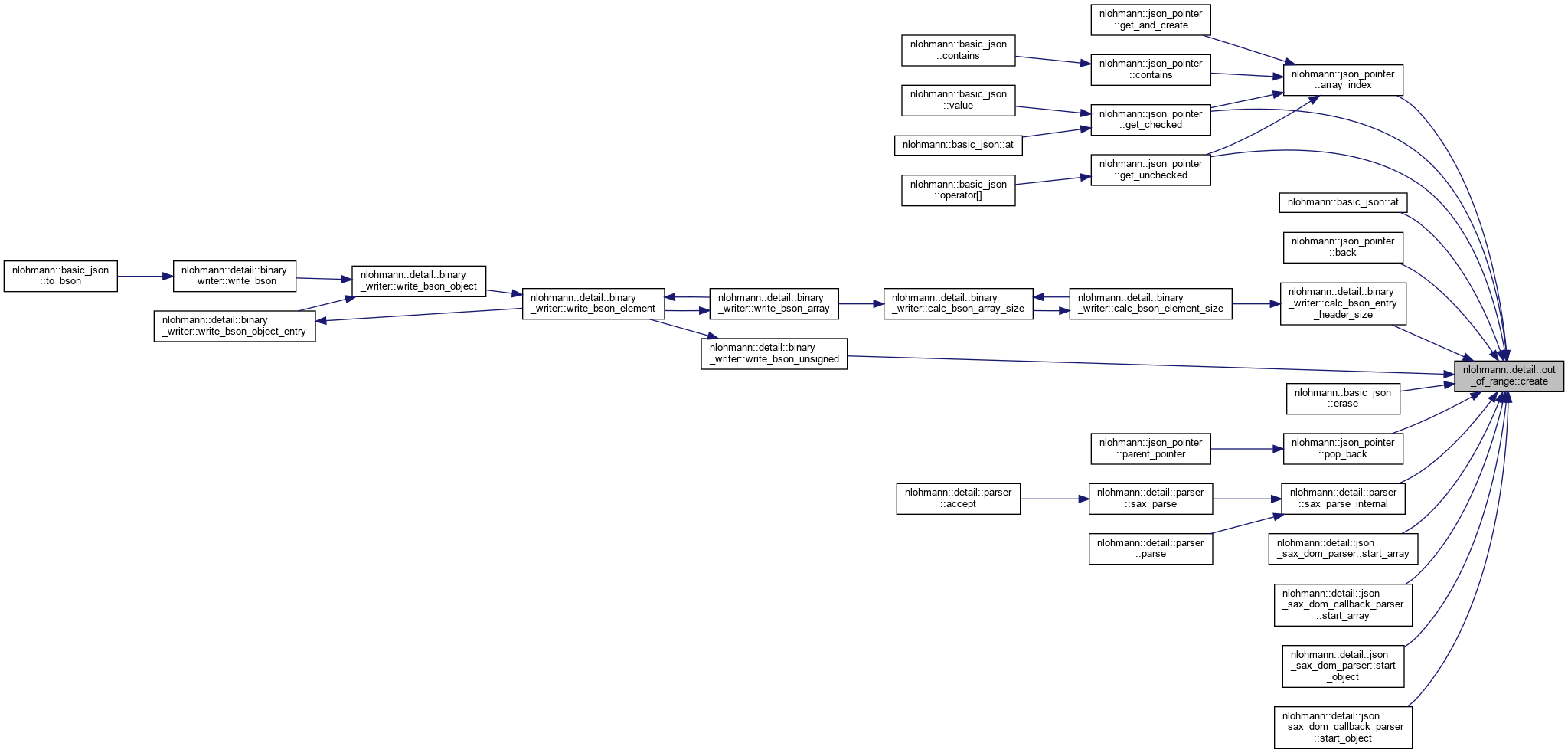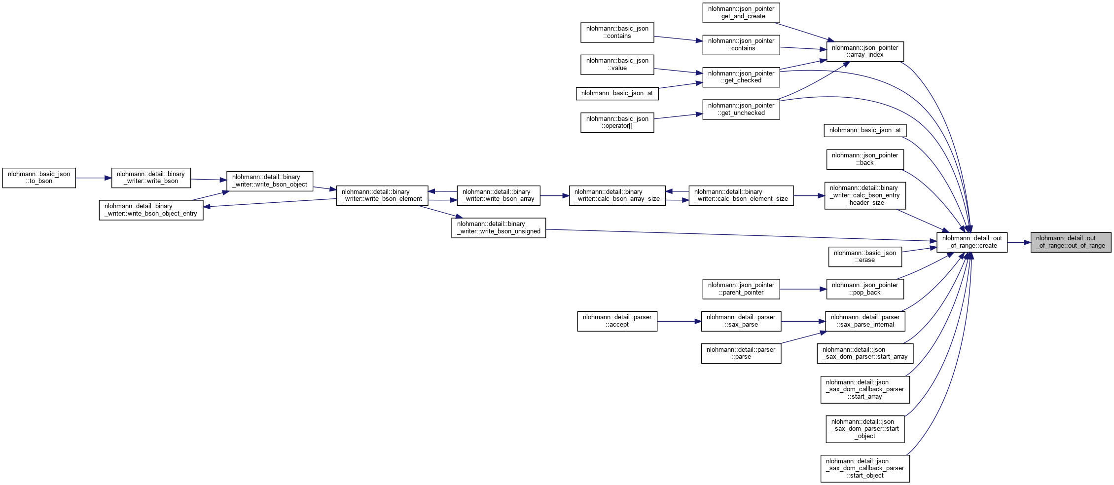 Referenced by nlohmann::json_pointer< BasicJsonType >::array_index(), nlohmann::basic_json< ObjectType, ArrayType, StringType, BooleanType, NumberIntegerType, NumberUnsignedType, NumberFloatType, AllocatorType, JSONSerializer, BinaryType >::at(), nlohmann::json_pointer< BasicJsonType >::back(), nlohmann::detail::binary_writer< BasicJsonType, CharType >::calc_bson_entry_header_size(), nlohmann::basic_json< ObjectType, ArrayType, StringType, BooleanType, NumberIntegerType, NumberUnsignedType, NumberFloatType, AllocatorType, JSONSerializer, BinaryType >::erase(), nlohmann::json_pointer< BasicJsonType >::get_checked(), nlohmann::json_pointer< BasicJsonType >::get_unchecked(), nlohmann::json_pointer< BasicJsonType >::pop_back(), nlohmann::detail::parser< BasicJsonType, InputAdapterType >::sax_parse_internal(), nlohmann::detail::json_sax_dom_parser< BasicJsonType >::start_array(), nlohmann::detail::json_sax_dom_callback_parser< BasicJsonType >::start_array(), nlohmann::detail::json_sax_dom_parser< BasicJsonType >::start_object(), nlohmann::detail::json_sax_dom_callback_parser< BasicJsonType >::start_object(), and nlohmann::detail::binary_writer< BasicJsonType, CharType >::write_bson_unsigned().