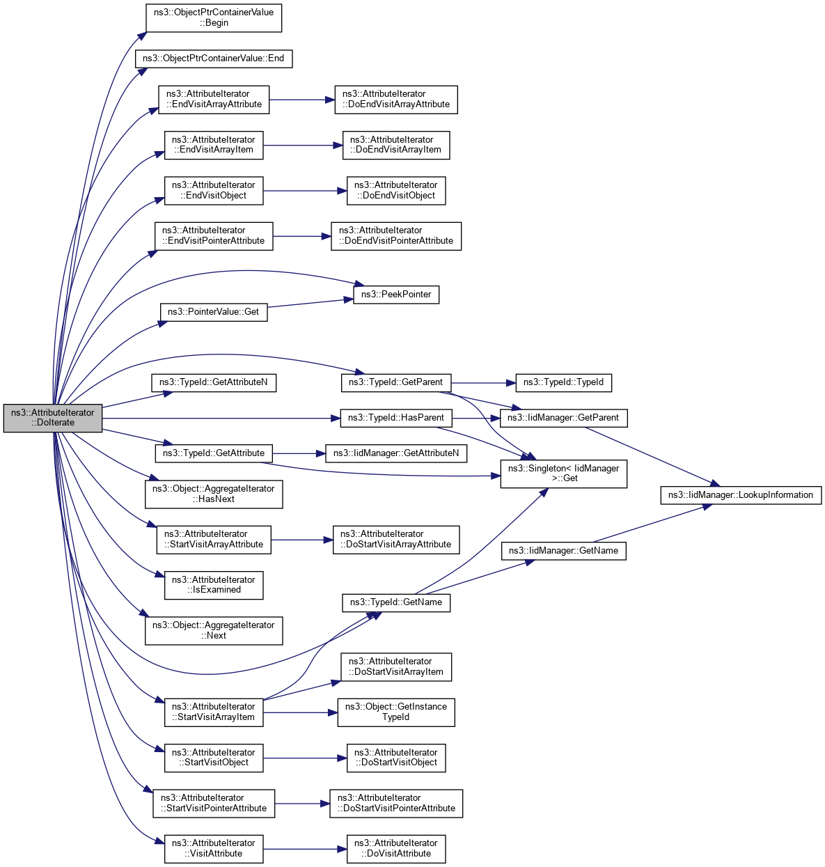 References ns3::TypeId::AttributeInformation::accessor, ns3::TypeId::ATTR_GET, ns3::TypeId::ATTR_SET, ns3::ObjectPtrContainerValue::Begin(), ns3::TypeId::AttributeInformation::checker, ns3::ObjectPtrContainerValue::End(), EndVisitArrayAttribute(), EndVisitArrayItem(), EndVisitObject(), EndVisitPointerAttribute(), ns3::TypeId::AttributeInformation::flags, ns3::PointerValue::Get(), ns3::TypeId::GetAttribute(), ns3::TypeId::GetAttributeN(), ns3::TypeId::GetName(), ns3::TypeId::GetParent(), ns3::Object::AggregateIterator::HasNext(), ns3::TypeId::HasParent(), IsExamined(), m_examined, ns3::TypeId::AttributeInformation::name, ns3::Object::AggregateIterator::Next(), NS_LOG_DEBUG, ns3::PeekPointer(), StartVisitArrayAttribute(), StartVisitArrayItem(), StartVisitObject(), StartVisitPointerAttribute(), and VisitAttribute().