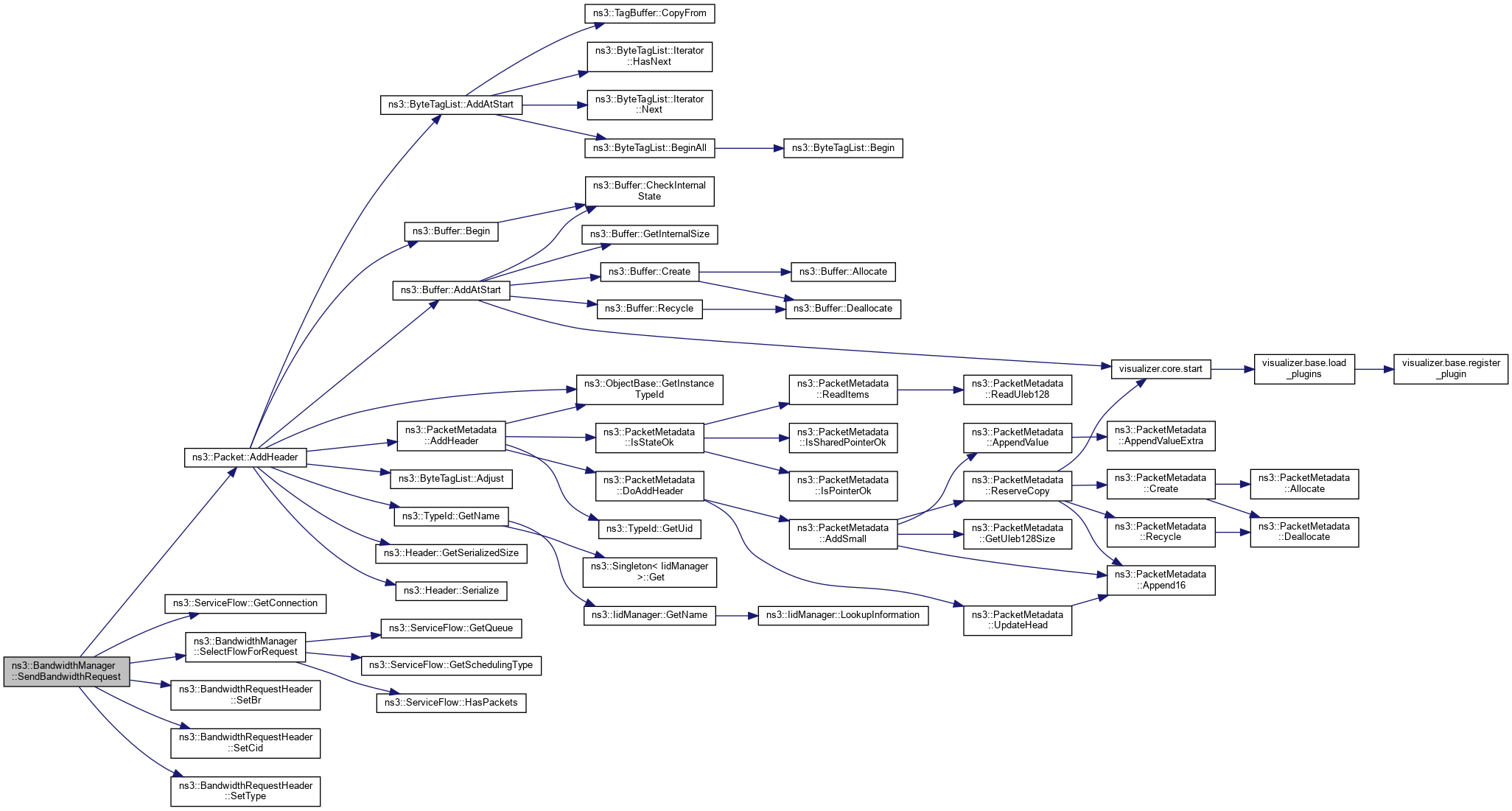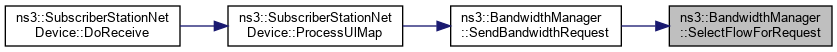 Here is the call graph for this function:| ServiceFlow * ns3::BandwidthManager::SelectFlowForRequest | ( | uint32_t & | bytesToRequest | ) |