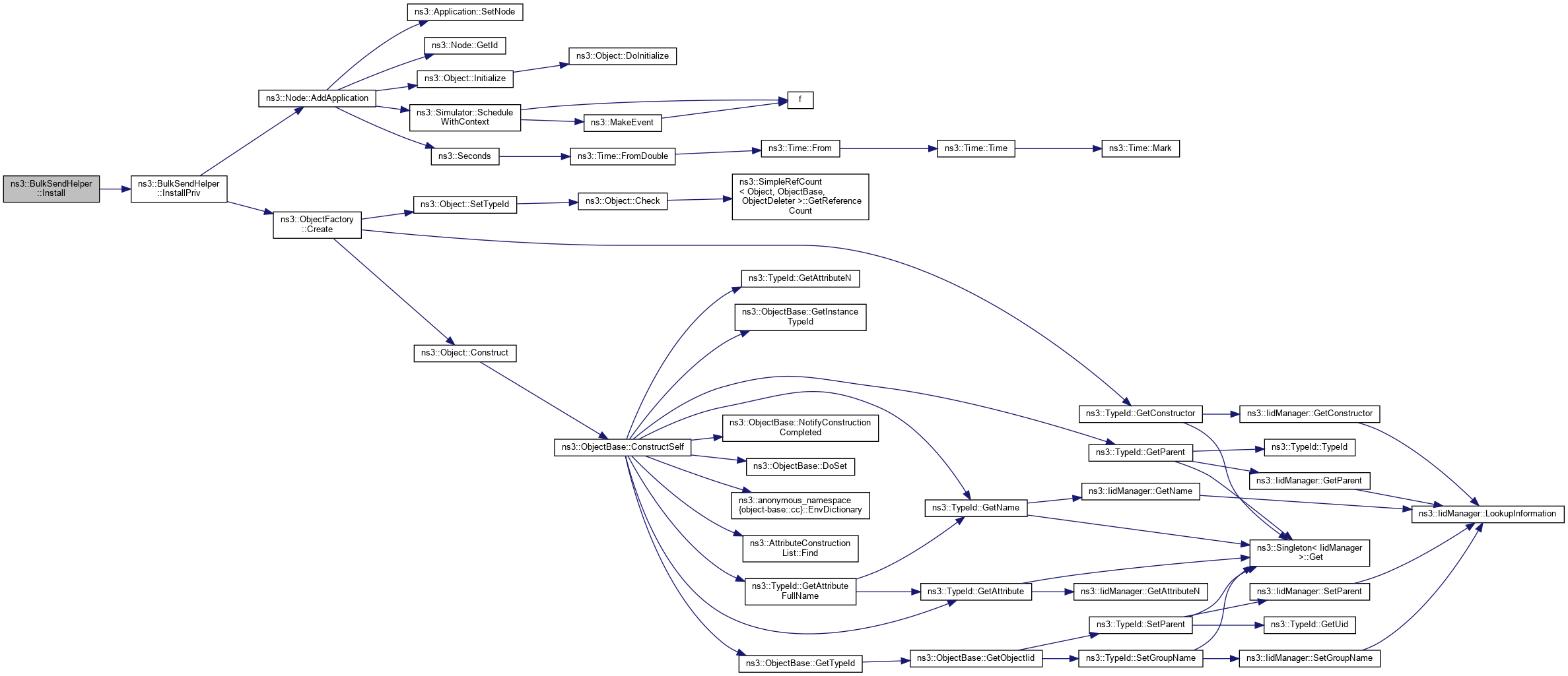 Here is the call graph for this function:| ApplicationContainer ns3::BulkSendHelper::Install | ( | std::string | nodeName | ) | const |