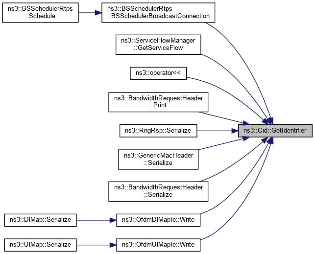 Here is the caller graph for this function:| uint16_t ns3::Cid::GetIdentifier | ( | void | ) | const |
