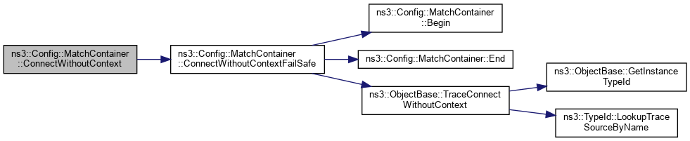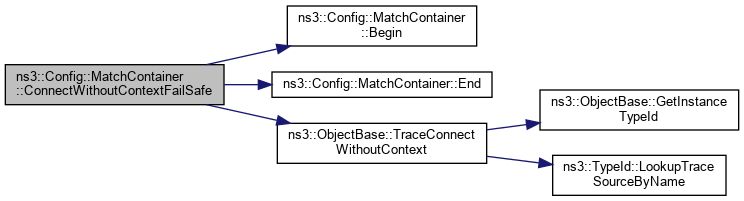 Here is the call graph for this function:| bool ns3::Config::MatchContainer::ConnectFailSafe | ( | std::string | name, |