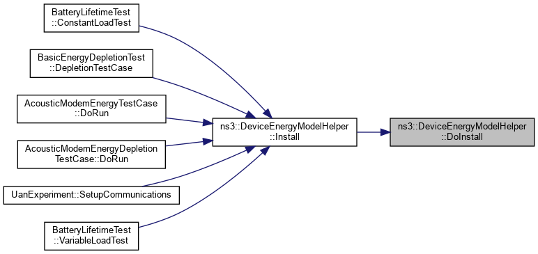 Here is the caller graph for this function:| DeviceEnergyModelContainer ns3::DeviceEnergyModelHelper::Install | ( | NetDeviceContainer | deviceContainer, |