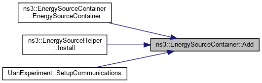 Here is the caller graph for this function:| void ns3::EnergySourceContainer::Add | ( | Ptr< EnergySource > | source | ) |