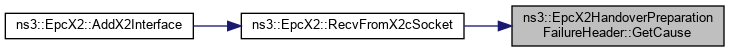 Here is the call graph for this function:| uint16_t ns3::EpcX2HandoverPreparationFailureHeader::GetCause | ( | ) | const |