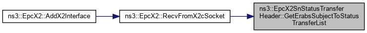 Here is the call graph for this function:| std::vector< EpcX2Sap::ErabsSubjectToStatusTransferItem > ns3::EpcX2SnStatusTransferHeader::GetErabsSubjectToStatusTransferList | ( | ) | const |