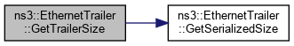 Here is the caller graph for this function:| uint32_t ns3::EthernetTrailer::GetTrailerSize | ( | void | ) | const |