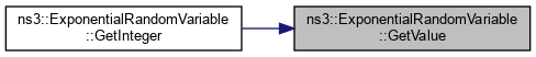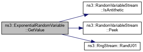 Here is the call graph for this function:| double ns3::ExponentialRandomVariable::GetValue | ( | double | mean, |
