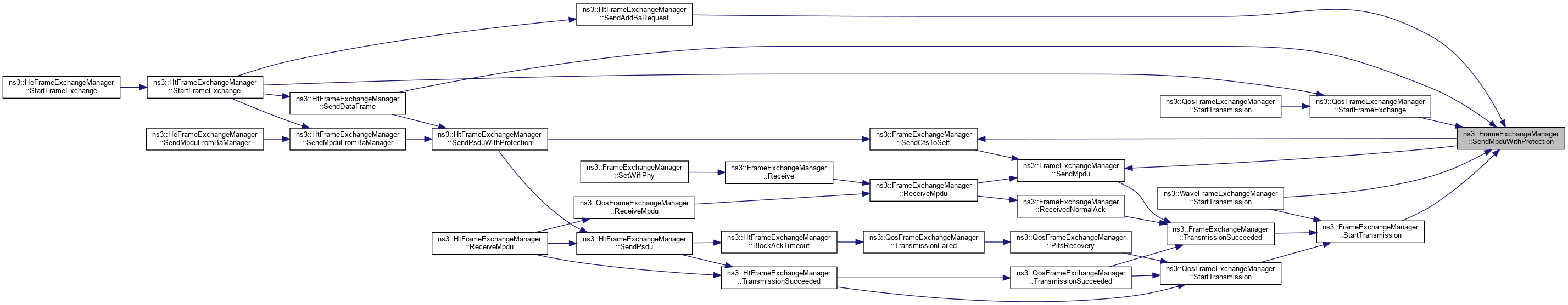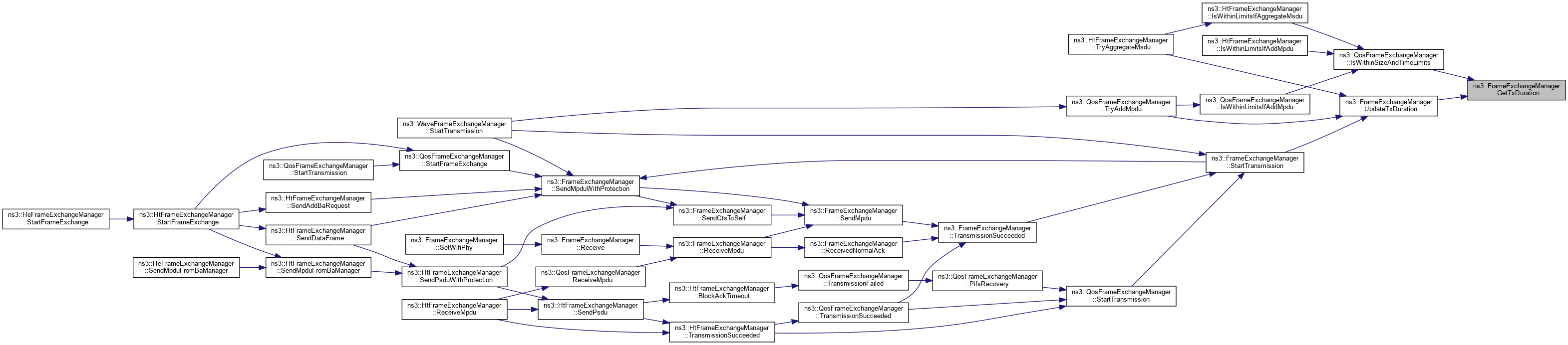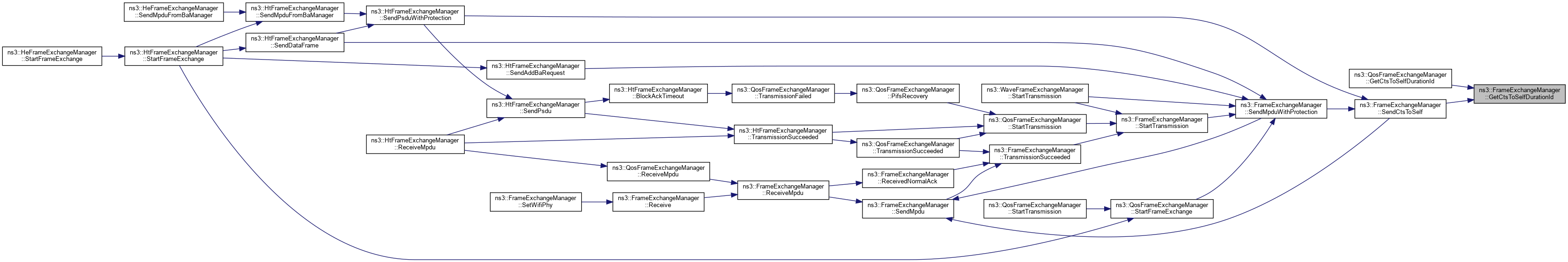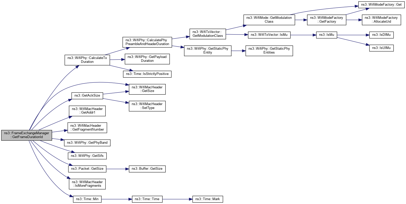 Referenced by ns3::HtFrameExchangeManager::BlockAckTimeout(), ns3::HtFrameExchangeManager::CreateBlockAckAgreement(), DequeueMpdu(), DoCtsTimeout(), DoDispose(), ns3::HtFrameExchangeManager::EndReceiveAmpdu(), ns3::QosFrameExchangeManager::ForwardMpduDown(), ns3::HtFrameExchangeManager::GetBaManager(), ns3::WaveFrameExchangeManager::GetDataTxVector(), GetFirstFragmentIfNeeded(), GetFrameDurationId(), GetRtsDurationId(), ns3::HeFrameExchangeManager::GetSupportedBaBufferSize(), ns3::HtFrameExchangeManager::MissedBlockAck(), ns3::HtFrameExchangeManager::NeedSetupBlockAck(), NormalAckTimeout(), NotifyInternalCollision(), ns3::HtFrameExchangeManager::NotifyPacketDiscarded(), ns3::HtFrameExchangeManager::NotifyReceivedNormalAck(), NotifySwitchingStartNow(), ns3::HtFrameExchangeManager::NotifyTxToEdca(), ns3::QosFrameExchangeManager::PreProcessFrame(), Receive(), ReceivedNormalAck(), ReceiveMpdu(), ns3::HtFrameExchangeManager::ReceiveMpdu(), ns3::HtFrameExchangeManager::ReleaseSequenceNumber(), ns3::HtFrameExchangeManager::RetransmitMpduAfterMissedAck(), ns3::HtFrameExchangeManager::SendAddBaRequest(), ns3::HtFrameExchangeManager::SendAddBaResponse(), ns3::QosFrameExchangeManager::SendCfEndIfNeeded(), SendCtsAfterRts(), ns3::HtFrameExchangeManager::SendDataFrame(), ns3::HtFrameExchangeManager::SendDelbaFrame(), ns3::HtFrameExchangeManager::SendMpduFromBaManager(), SendNormalAck(), ns3::HtFrameExchangeManager::SendPsdu(), ns3::HeFrameExchangeManager::SendPsduMap(), ns3::HeFrameExchangeManager::SetMultiUserScheduler(), SetWifiMac(), ns3::QosFrameExchangeManager::StartFrameExchange(), ns3::HtFrameExchangeManager::StartFrameExchange(), and StartTransmission().
