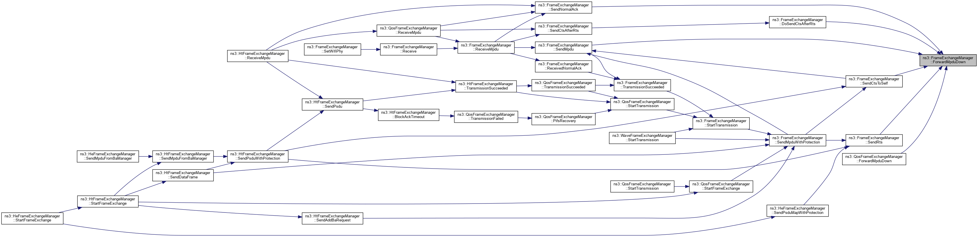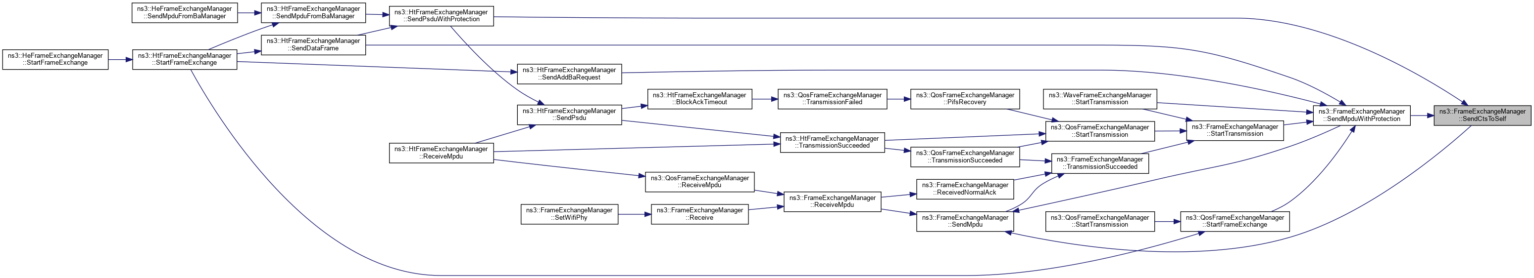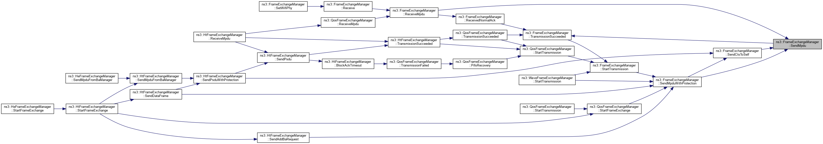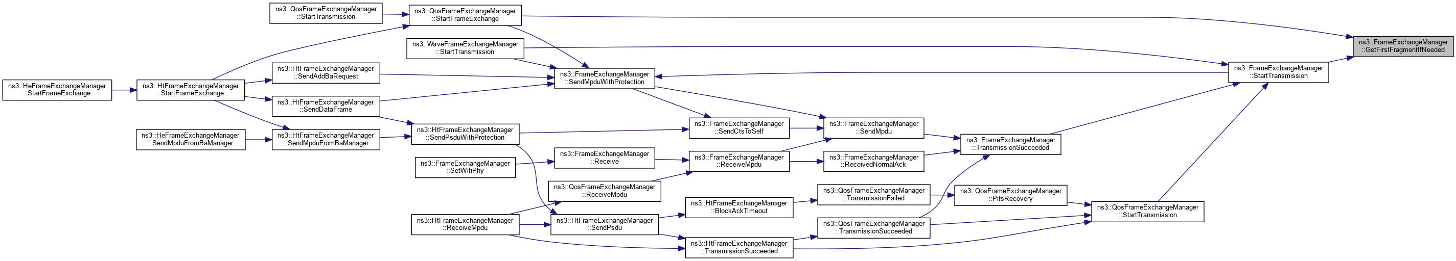Referenced by ns3::HtFrameExchangeManager::BlockAckTimeout(), ns3::HtFrameExchangeManager::CreateBlockAckAgreement(), DequeueMpdu(), DoCtsTimeout(), DoDispose(), ns3::HtFrameExchangeManager::EndReceiveAmpdu(), ns3::QosFrameExchangeManager::ForwardMpduDown(), ns3::HtFrameExchangeManager::GetBaManager(), ns3::WaveFrameExchangeManager::GetDataTxVector(), GetFirstFragmentIfNeeded(), GetFrameDurationId(), GetRtsDurationId(), ns3::HeFrameExchangeManager::GetSupportedBaBufferSize(), ns3::HtFrameExchangeManager::MissedBlockAck(), ns3::HtFrameExchangeManager::NeedSetupBlockAck(), NormalAckTimeout(), NotifyInternalCollision(), ns3::HtFrameExchangeManager::NotifyPacketDiscarded(), ns3::HtFrameExchangeManager::NotifyReceivedNormalAck(), NotifySwitchingStartNow(), ns3::HtFrameExchangeManager::NotifyTxToEdca(), ns3::QosFrameExchangeManager::PreProcessFrame(), Receive(), ReceivedNormalAck(), ReceiveMpdu(), ns3::HtFrameExchangeManager::ReceiveMpdu(), ns3::HtFrameExchangeManager::ReleaseSequenceNumber(), ns3::HtFrameExchangeManager::RetransmitMpduAfterMissedAck(), ns3::HtFrameExchangeManager::SendAddBaRequest(), ns3::HtFrameExchangeManager::SendAddBaResponse(), ns3::QosFrameExchangeManager::SendCfEndIfNeeded(), SendCtsAfterRts(), ns3::HtFrameExchangeManager::SendDataFrame(), ns3::HtFrameExchangeManager::SendDelbaFrame(), ns3::HtFrameExchangeManager::SendMpduFromBaManager(), SendNormalAck(), ns3::HtFrameExchangeManager::SendPsdu(), ns3::HeFrameExchangeManager::SendPsduMap(), ns3::HeFrameExchangeManager::SetMultiUserScheduler(), SetWifiMac(), ns3::QosFrameExchangeManager::StartFrameExchange(), ns3::HtFrameExchangeManager::StartFrameExchange(), and StartTransmission().