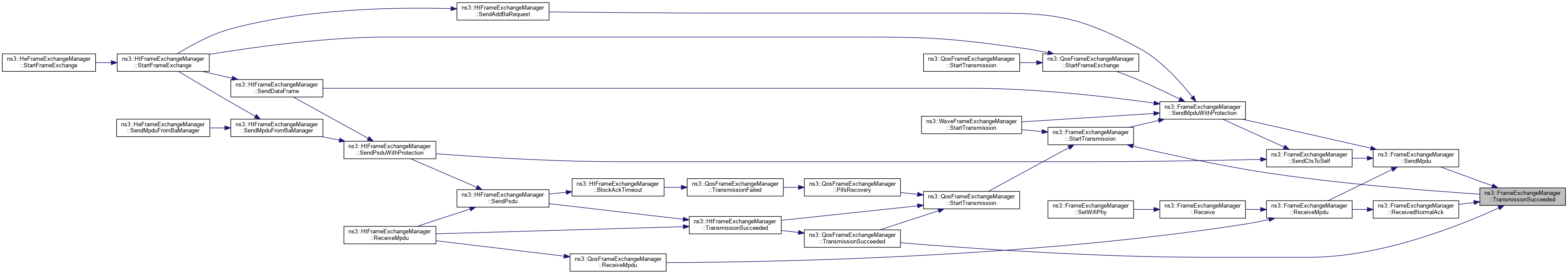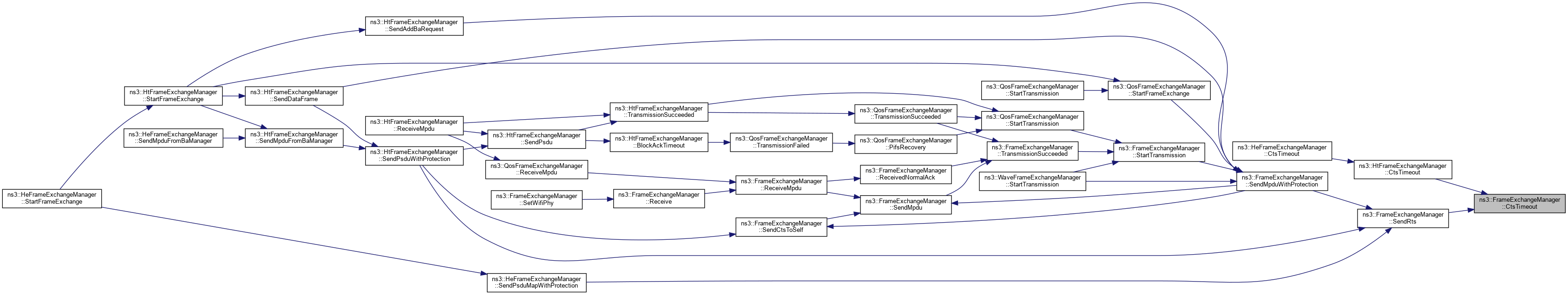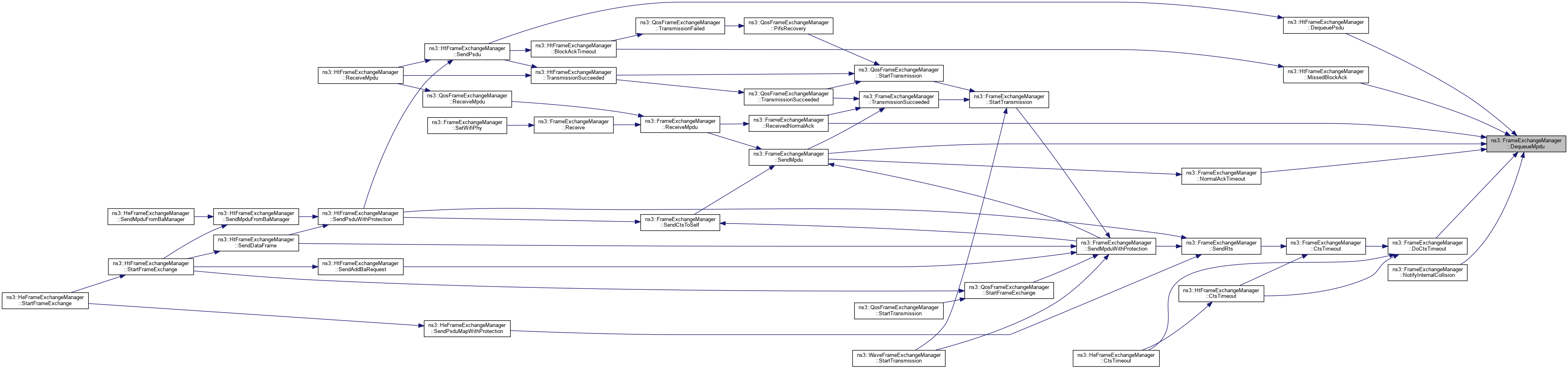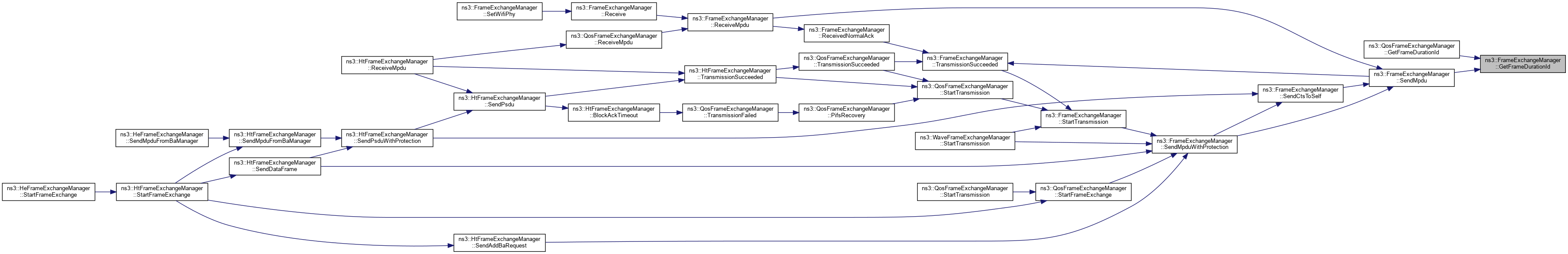 Referenced by ns3::HtFrameExchangeManager::BlockAckTimeout(), ns3::HtFrameExchangeManager::CreateBlockAckAgreement(), DequeueMpdu(), DoCtsTimeout(), DoDispose(), ns3::HtFrameExchangeManager::EndReceiveAmpdu(), ns3::QosFrameExchangeManager::ForwardMpduDown(), ns3::HtFrameExchangeManager::GetBaManager(), ns3::WaveFrameExchangeManager::GetDataTxVector(), GetFirstFragmentIfNeeded(), GetFrameDurationId(), GetRtsDurationId(), ns3::HeFrameExchangeManager::GetSupportedBaBufferSize(), ns3::HtFrameExchangeManager::MissedBlockAck(), ns3::HtFrameExchangeManager::NeedSetupBlockAck(), NormalAckTimeout(), NotifyInternalCollision(), ns3::HtFrameExchangeManager::NotifyPacketDiscarded(), ns3::HtFrameExchangeManager::NotifyReceivedNormalAck(), NotifySwitchingStartNow(), ns3::HtFrameExchangeManager::NotifyTxToEdca(), ns3::QosFrameExchangeManager::PreProcessFrame(), Receive(), ReceivedNormalAck(), ReceiveMpdu(), ns3::HtFrameExchangeManager::ReceiveMpdu(), ns3::HtFrameExchangeManager::ReleaseSequenceNumber(), ns3::HtFrameExchangeManager::RetransmitMpduAfterMissedAck(), ns3::HtFrameExchangeManager::SendAddBaRequest(), ns3::HtFrameExchangeManager::SendAddBaResponse(), ns3::QosFrameExchangeManager::SendCfEndIfNeeded(), SendCtsAfterRts(), ns3::HtFrameExchangeManager::SendDataFrame(), ns3::HtFrameExchangeManager::SendDelbaFrame(), ns3::HtFrameExchangeManager::SendMpduFromBaManager(), SendNormalAck(), ns3::HtFrameExchangeManager::SendPsdu(), ns3::HeFrameExchangeManager::SendPsduMap(), ns3::HeFrameExchangeManager::SetMultiUserScheduler(), SetWifiMac(), ns3::QosFrameExchangeManager::StartFrameExchange(), ns3::HtFrameExchangeManager::StartFrameExchange(), and StartTransmission().