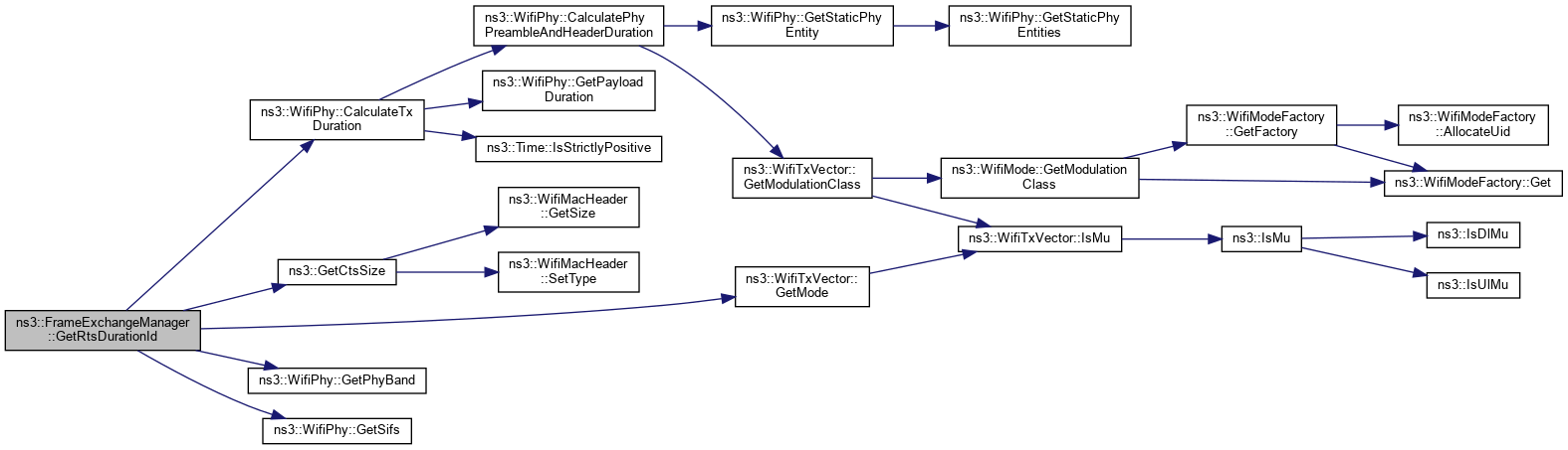 Referenced by CalculateAcknowledgmentTime(), ns3::HtFrameExchangeManager::CalculateAcknowledgmentTime(), CalculateProtectionTime(), DoDispose(), DoSendCtsAfterRts(), ns3::HtFrameExchangeManager::EndReceiveAmpdu(), ForwardMpduDown(), ns3::HtFrameExchangeManager::ForwardPsduDown(), GetCtsToSelfDurationId(), ns3::QosFrameExchangeManager::GetCtsToSelfDurationId(), GetFrameDurationId(), ns3::QosFrameExchangeManager::GetFrameDurationId(), GetRtsDurationId(), ns3::QosFrameExchangeManager::GetRtsDurationId(), GetTxDuration(), ns3::QosFrameExchangeManager::PifsRecovery(), ReceiveMpdu(), ns3::HtFrameExchangeManager::ReceiveMpdu(), ns3::QosFrameExchangeManager::ReceiveMpdu(), ResetPhy(), ns3::HtFrameExchangeManager::SendBlockAck(), ns3::QosFrameExchangeManager::SendCfEndIfNeeded(), SendCtsToSelf(), SendMpdu(), ns3::HtFrameExchangeManager::SendMpduFromBaManager(), SendNormalAck(), ns3::HtFrameExchangeManager::SendPsdu(), ns3::HeFrameExchangeManager::SendPsduMap(), SendRts(), SetWifiPhy(), ns3::WaveFrameExchangeManager::StartTransmission(), ns3::QosFrameExchangeManager::TransmissionFailed(), TransmissionSucceeded(), ns3::HtFrameExchangeManager::TransmissionSucceeded(), ns3::QosFrameExchangeManager::TransmissionSucceeded(), and UpdateNav().