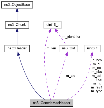 Collaboration diagram for ns3::GenericMacHeader:Public Member Functions | |