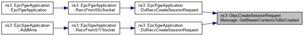 Here is the call graph for this function:| std::list< GtpcCreateSessionRequestMessage::BearerContextToBeCreated > ns3::GtpcCreateSessionRequestMessage::GetBearerContextsToBeCreated | ( | ) | const |