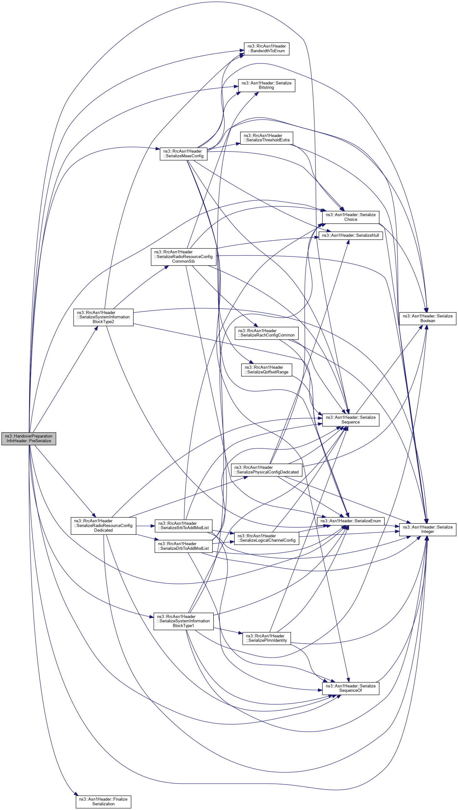 References ns3::RrcAsn1Header::BandwidthToEnum(), ns3::LteRrcSap::MasterInformationBlock::dlBandwidth, ns3::Asn1Header::FinalizeSerialization(), m_asConfig, ns3::Asn1Header::m_serializationResult, MAX_EARFCN, MAX_RAT_CAPABILITIES, ns3::Asn1Header::SerializeBitstring(), ns3::Asn1Header::SerializeChoice(), ns3::Asn1Header::SerializeEnum(), ns3::Asn1Header::SerializeInteger(), ns3::RrcAsn1Header::SerializeMeasConfig(), ns3::RrcAsn1Header::SerializeRadioResourceConfigDedicated(), ns3::Asn1Header::SerializeSequence(), ns3::Asn1Header::SerializeSequenceOf(), ns3::RrcAsn1Header::SerializeSystemInformationBlockType1(), ns3::RrcAsn1Header::SerializeSystemInformationBlockType2(), ns3::LteRrcSap::AsConfig::sourceDlCarrierFreq, ns3::LteRrcSap::AsConfig::sourceMasterInformationBlock, ns3::LteRrcSap::AsConfig::sourceMeasConfig, ns3::LteRrcSap::AsConfig::sourceRadioResourceConfig, ns3::LteRrcSap::AsConfig::sourceSystemInformationBlockType1, ns3::LteRrcSap::AsConfig::sourceSystemInformationBlockType2, ns3::LteRrcSap::AsConfig::sourceUeIdentity, and ns3::LteRrcSap::MasterInformationBlock::systemFrameNumber.