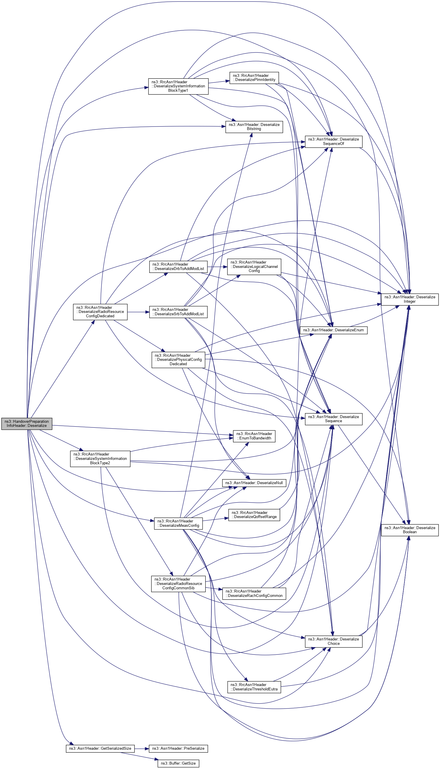References ns3::Asn1Header::DeserializeBitstring(), ns3::Asn1Header::DeserializeChoice(), ns3::Asn1Header::DeserializeEnum(), ns3::Asn1Header::DeserializeInteger(), ns3::RrcAsn1Header::DeserializeMeasConfig(), ns3::Asn1Header::DeserializeNull(), ns3::RrcAsn1Header::DeserializeRadioResourceConfigDedicated(), ns3::Asn1Header::DeserializeSequence(), ns3::Asn1Header::DeserializeSequenceOf(), ns3::RrcAsn1Header::DeserializeSystemInformationBlockType1(), ns3::RrcAsn1Header::DeserializeSystemInformationBlockType2(), ns3::LteRrcSap::MasterInformationBlock::dlBandwidth, ns3::RrcAsn1Header::EnumToBandwidth(), ns3::Asn1Header::GetSerializedSize(), m_asConfig, MAX_EARFCN, MAX_RAT_CAPABILITIES, ns3::LteRrcSap::AsConfig::sourceDlCarrierFreq, ns3::LteRrcSap::AsConfig::sourceMasterInformationBlock, ns3::LteRrcSap::AsConfig::sourceMeasConfig, ns3::LteRrcSap::AsConfig::sourceRadioResourceConfig, ns3::LteRrcSap::AsConfig::sourceSystemInformationBlockType1, ns3::LteRrcSap::AsConfig::sourceSystemInformationBlockType2, ns3::LteRrcSap::AsConfig::sourceUeIdentity, and ns3::LteRrcSap::MasterInformationBlock::systemFrameNumber.