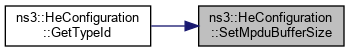Here is the caller graph for this function:| uint16_t ns3::HeConfiguration::GetMpduBufferSize | ( | void | ) | const |