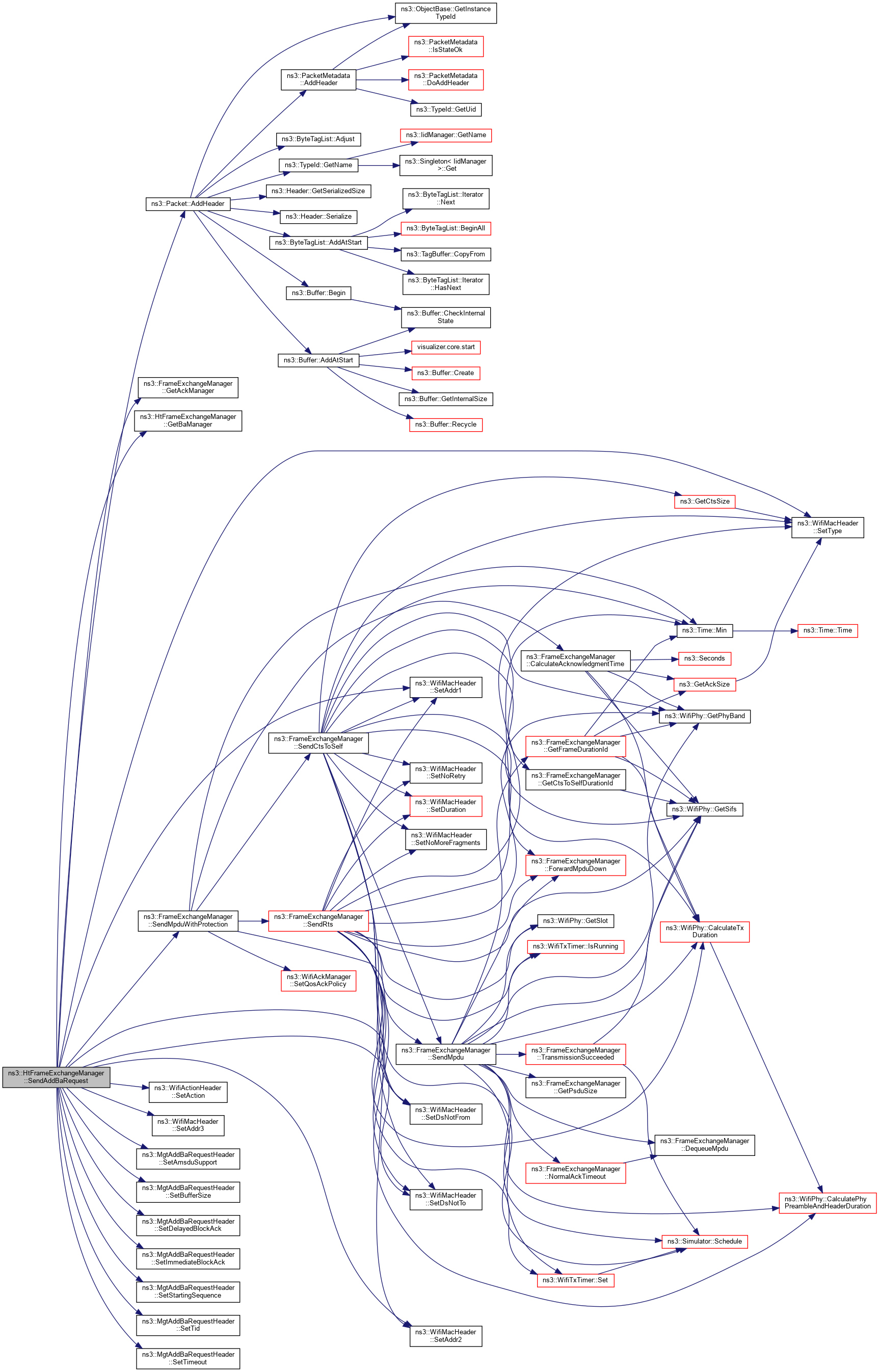 References ns3::Packet::AddHeader(), ns3::WifiActionHeader::BLOCK_ACK, ns3::WifiActionHeader::BLOCK_ACK_ADDBA_REQUEST, ns3::WifiActionHeader::ActionValue::blockAck, ns3::FrameExchangeManager::GetAckManager(), GetBaManager(), ns3::WifiTxParameters::m_acknowledgment, ns3::FrameExchangeManager::m_bssid, ns3::FrameExchangeManager::m_mac, ns3::WifiTxParameters::m_protection, ns3::FrameExchangeManager::m_self, ns3::FrameExchangeManager::m_txMiddle, ns3::WifiTxParameters::m_txVector, NS_LOG_DEBUG, NS_LOG_FUNCTION, ns3::FrameExchangeManager::SendMpduWithProtection(), ns3::WifiActionHeader::SetAction(), ns3::WifiMacHeader::SetAddr1(), ns3::WifiMacHeader::SetAddr2(), ns3::WifiMacHeader::SetAddr3(), ns3::MgtAddBaRequestHeader::SetAmsduSupport(), ns3::MgtAddBaRequestHeader::SetBufferSize(), ns3::MgtAddBaRequestHeader::SetDelayedBlockAck(), ns3::WifiMacHeader::SetDsNotFrom(), ns3::WifiMacHeader::SetDsNotTo(), ns3::MgtAddBaRequestHeader::SetImmediateBlockAck(), ns3::MgtAddBaRequestHeader::SetStartingSequence(), ns3::MgtAddBaRequestHeader::SetTid(), ns3::MgtAddBaRequestHeader::SetTimeout(), ns3::WifiMacHeader::SetType(), timeout, and ns3::WIFI_MAC_MGT_ACTION.