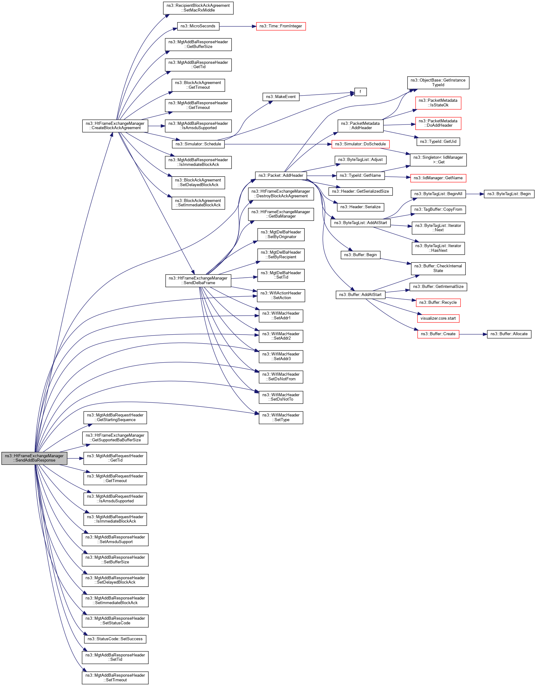 References ns3::Packet::AddHeader(), ns3::WifiActionHeader::BLOCK_ACK, ns3::WifiActionHeader::BLOCK_ACK_ADDBA_RESPONSE, ns3::WifiActionHeader::ActionValue::blockAck, CreateBlockAckAgreement(), ns3::MgtAddBaRequestHeader::GetStartingSequence(), GetSupportedBaBufferSize(), ns3::MgtAddBaRequestHeader::GetTid(), ns3::MgtAddBaRequestHeader::GetTimeout(), ns3::MgtAddBaRequestHeader::IsAmsduSupported(), ns3::MgtAddBaRequestHeader::IsImmediateBlockAck(), ns3::FrameExchangeManager::m_bssid, ns3::FrameExchangeManager::m_mac, ns3::FrameExchangeManager::m_self, NS_LOG_FUNCTION, ns3::WifiActionHeader::SetAction(), ns3::WifiMacHeader::SetAddr1(), ns3::WifiMacHeader::SetAddr2(), ns3::WifiMacHeader::SetAddr3(), ns3::MgtAddBaResponseHeader::SetAmsduSupport(), ns3::MgtAddBaResponseHeader::SetBufferSize(), ns3::MgtAddBaResponseHeader::SetDelayedBlockAck(), ns3::WifiMacHeader::SetDsNotFrom(), ns3::WifiMacHeader::SetDsNotTo(), ns3::MgtAddBaResponseHeader::SetImmediateBlockAck(), ns3::MgtAddBaResponseHeader::SetStatusCode(), ns3::StatusCode::SetSuccess(), ns3::MgtAddBaResponseHeader::SetTid(), ns3::MgtAddBaResponseHeader::SetTimeout(), ns3::WifiMacHeader::SetType(), and ns3::WIFI_MAC_MGT_ACTION.