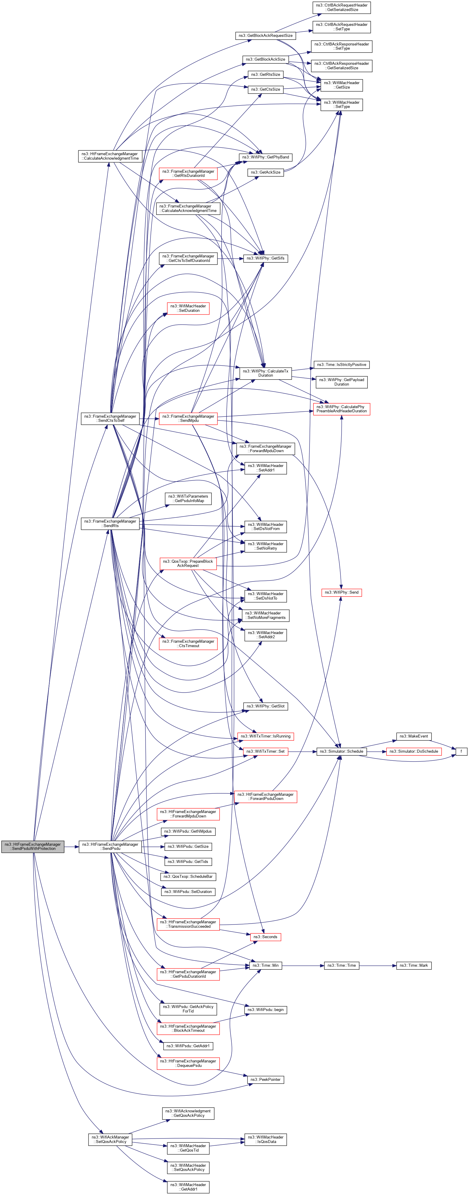 References CalculateAcknowledgmentTime(), ns3::WifiProtection::CTS_TO_SELF, ns3::WifiTxParameters::m_acknowledgment, ns3::WifiTxParameters::m_protection, m_psdu, m_txParams, ns3::Time::Min(), ns3::WifiProtection::NONE, NS_ABORT_MSG, NS_ASSERT, NS_LOG_FUNCTION, ns3::PeekPointer(), ns3::WifiProtection::RTS_CTS, ns3::FrameExchangeManager::SendCtsToSelf(), SendPsdu(), ns3::FrameExchangeManager::SendRts(), and ns3::WifiAckManager::SetQosAckPolicy().