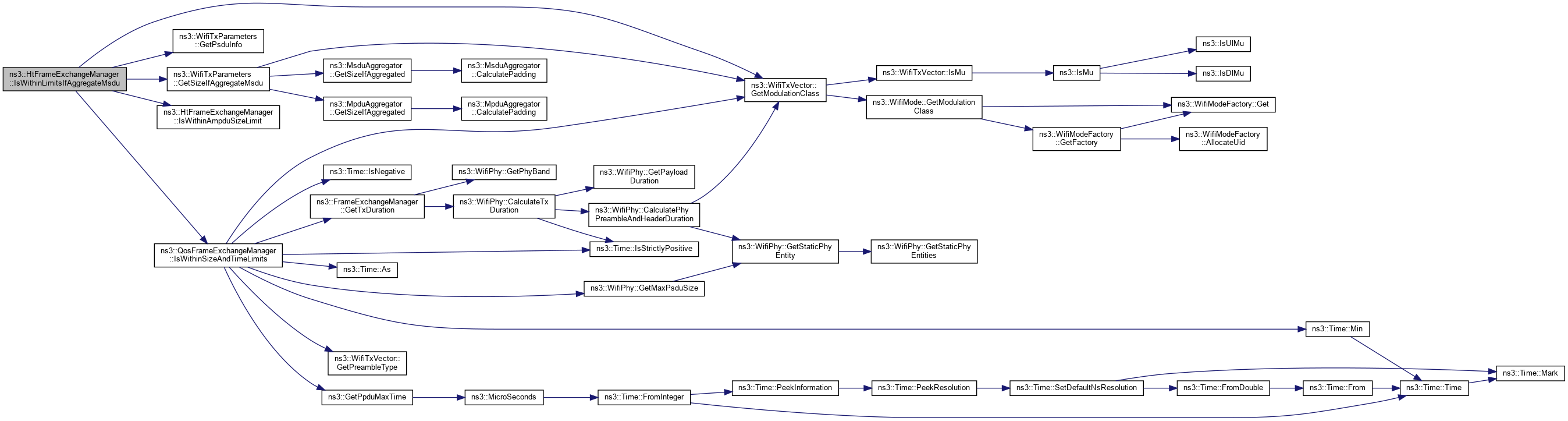 | virtual bool | IsWithinLimitsIfAggregateMsdu (Ptr< const WifiMacQueueItem > msdu, const WifiTxParameters &txParams, Time ppduDurationLimit) const |