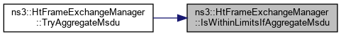 | bool | IsWithinLimitsIfAddMpdu (Ptr< const WifiMacQueueItem > mpdu, const WifiTxParameters &txParams, Time ppduDurationLimit) const override |