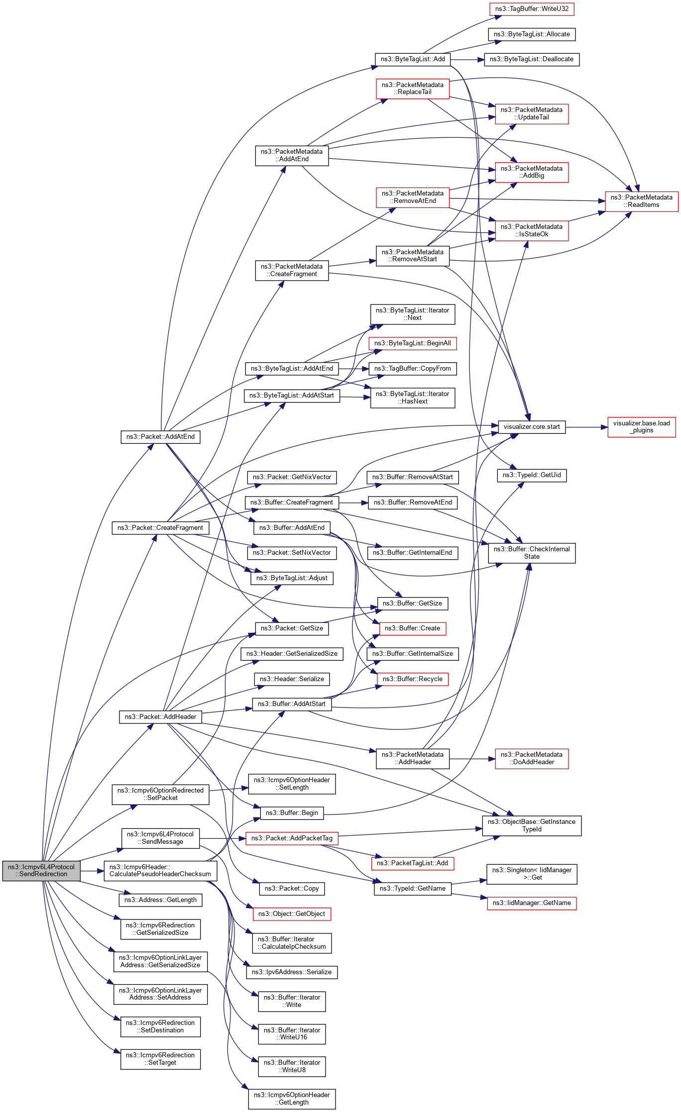 References ns3::Packet::AddAtEnd(), ns3::Packet::AddHeader(), ns3::Icmpv6Header::CalculatePseudoHeaderChecksum(), ns3::Packet::CreateFragment(), ns3::Address::GetLength(), ns3::Icmpv6Redirection::GetSerializedSize(), ns3::Icmpv6OptionLinkLayerAddress::GetSerializedSize(), ns3::Packet::GetSize(), NS_LOG_FUNCTION, NS_LOG_LOGIC, PROT_NUMBER, SendMessage(), ns3::Icmpv6OptionLinkLayerAddress::SetAddress(), ns3::Icmpv6Redirection::SetDestination(), ns3::Icmpv6OptionRedirected::SetPacket(), and ns3::Icmpv6Redirection::SetTarget().