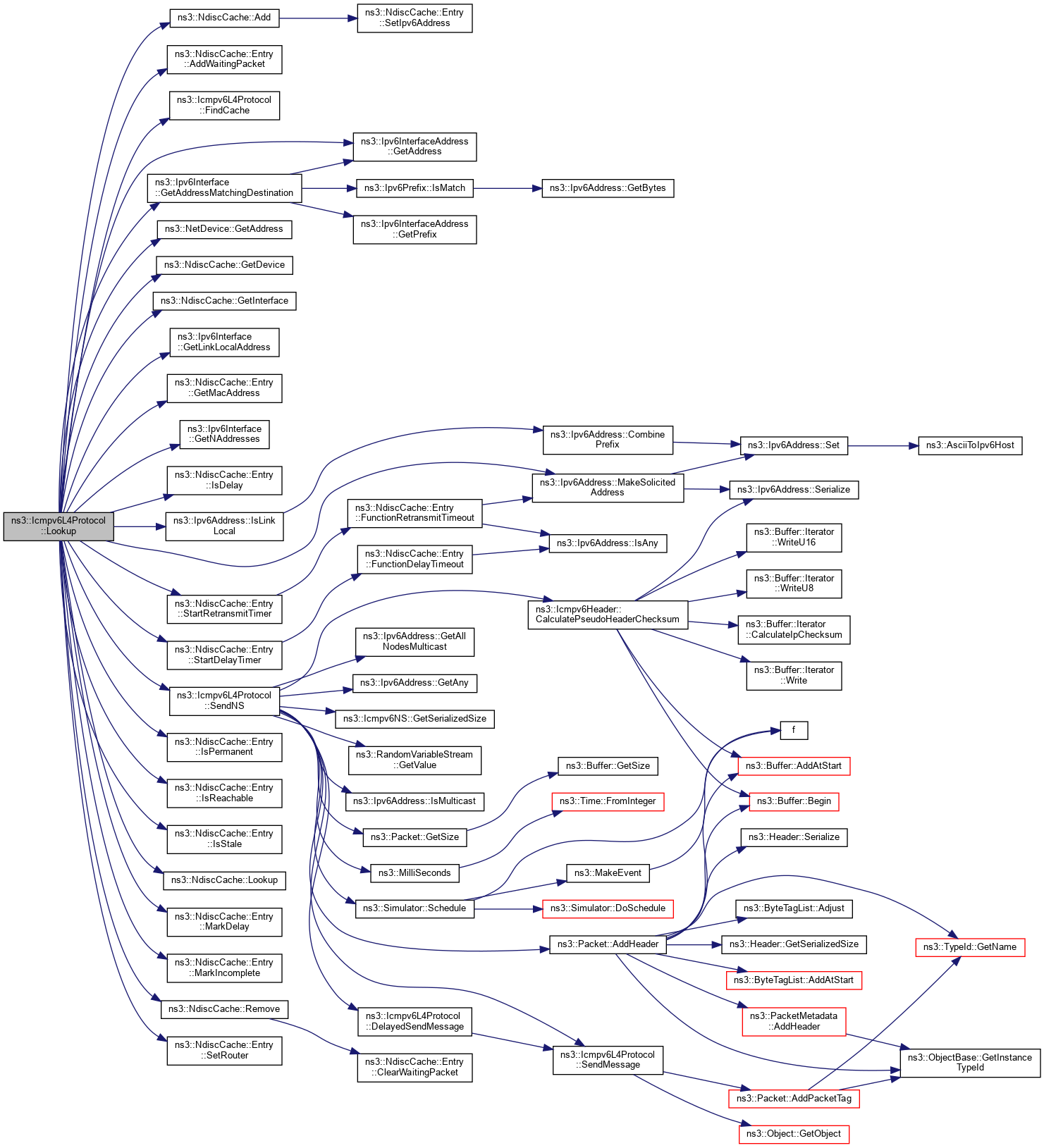 | bool | Lookup (Ptr< Packet > p, const Ipv6Header &ipHeader, Ipv6Address dst, Ptr< NetDevice > device, Ptr< NdiscCache > cache, Address *hardwareDestination) |