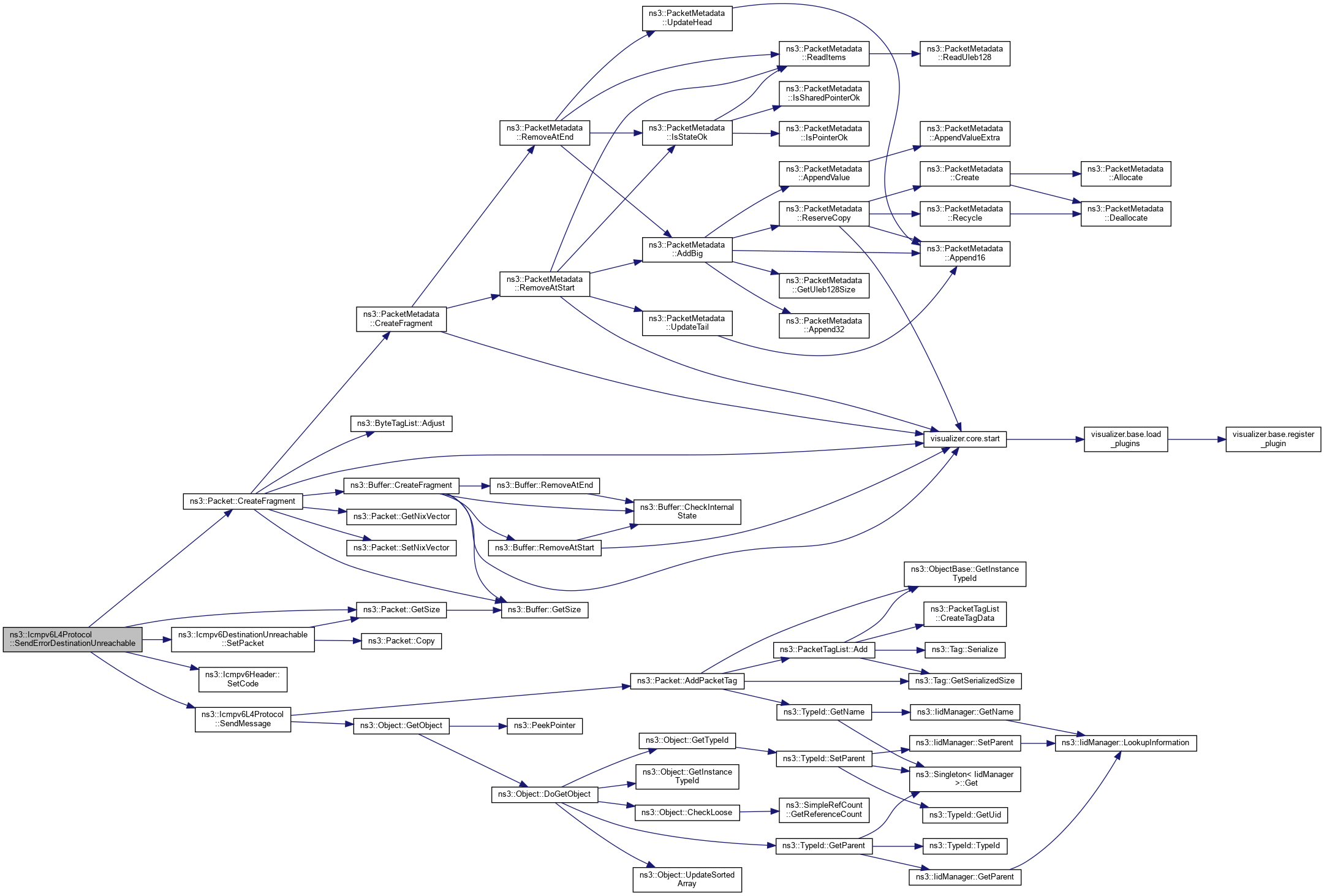 References ns3::Packet::CreateFragment(), ns3::Packet::GetSize(), NS_LOG_FUNCTION, NS_LOG_LOGIC, SendMessage(), ns3::Icmpv6Header::SetCode(), and ns3::Icmpv6DestinationUnreachable::SetPacket().