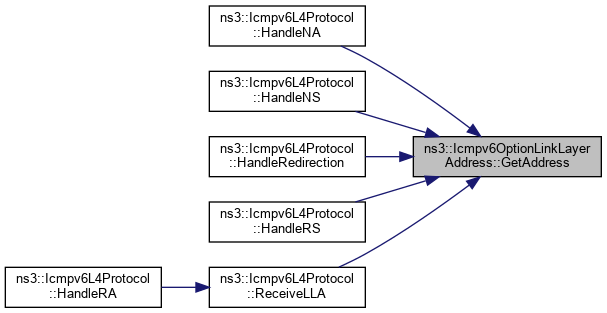 Here is the call graph for this function:| Address ns3::Icmpv6OptionLinkLayerAddress::GetAddress | ( | void | ) | const |