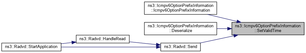 Here is the caller graph for this function:| void ns3::Icmpv6OptionPrefixInformation::SetValidTime | ( | uint32_t | validTime | ) |