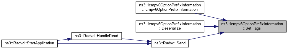 Here is the call graph for this function:| void ns3::Icmpv6OptionPrefixInformation::SetFlags | ( | uint8_t | flags | ) |