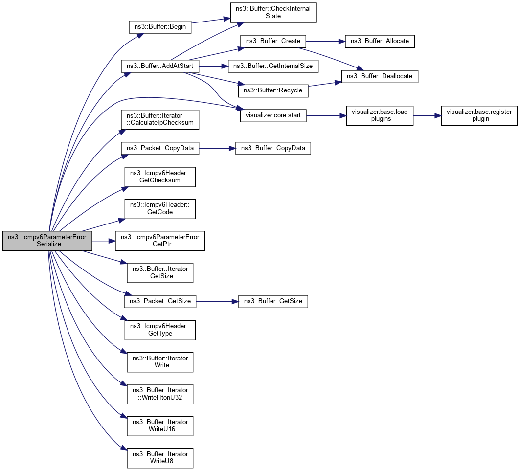 References ns3::Buffer::AddAtStart(), ns3::Buffer::Begin(), ns3::Buffer::Iterator::CalculateIpChecksum(), ns3::Packet::CopyData(), ns3::Icmpv6Header::GetChecksum(), ns3::Icmpv6Header::GetCode(), GetPtr(), ns3::Buffer::Iterator::GetSize(), ns3::Packet::GetSize(), ns3::Icmpv6Header::GetType(), m_packet, NS_LOG_FUNCTION, visualizer.core::start(), ns3::Buffer::Iterator::Write(), ns3::Buffer::Iterator::WriteHtonU32(), ns3::Buffer::Iterator::WriteU16(), and ns3::Buffer::Iterator::WriteU8().
