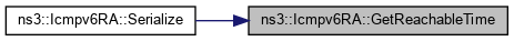 Here is the caller graph for this function:| uint32_t ns3::Icmpv6RA::GetReachableTime | ( | ) | const |