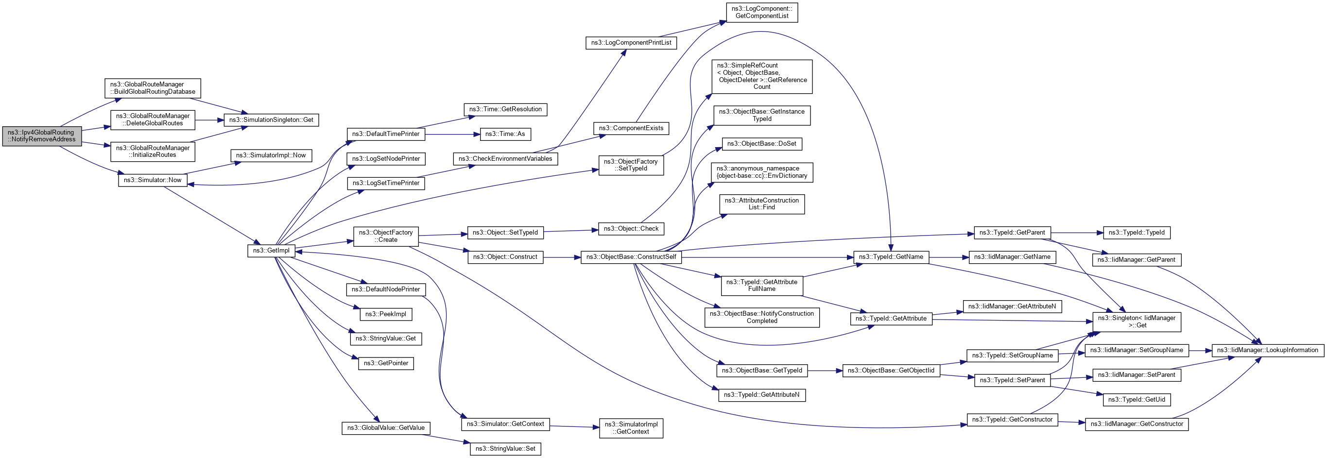 Here is the call graph for this function:| void ns3::Ipv4GlobalRouting::RemoveRoute | ( | uint32_t | i | ) |