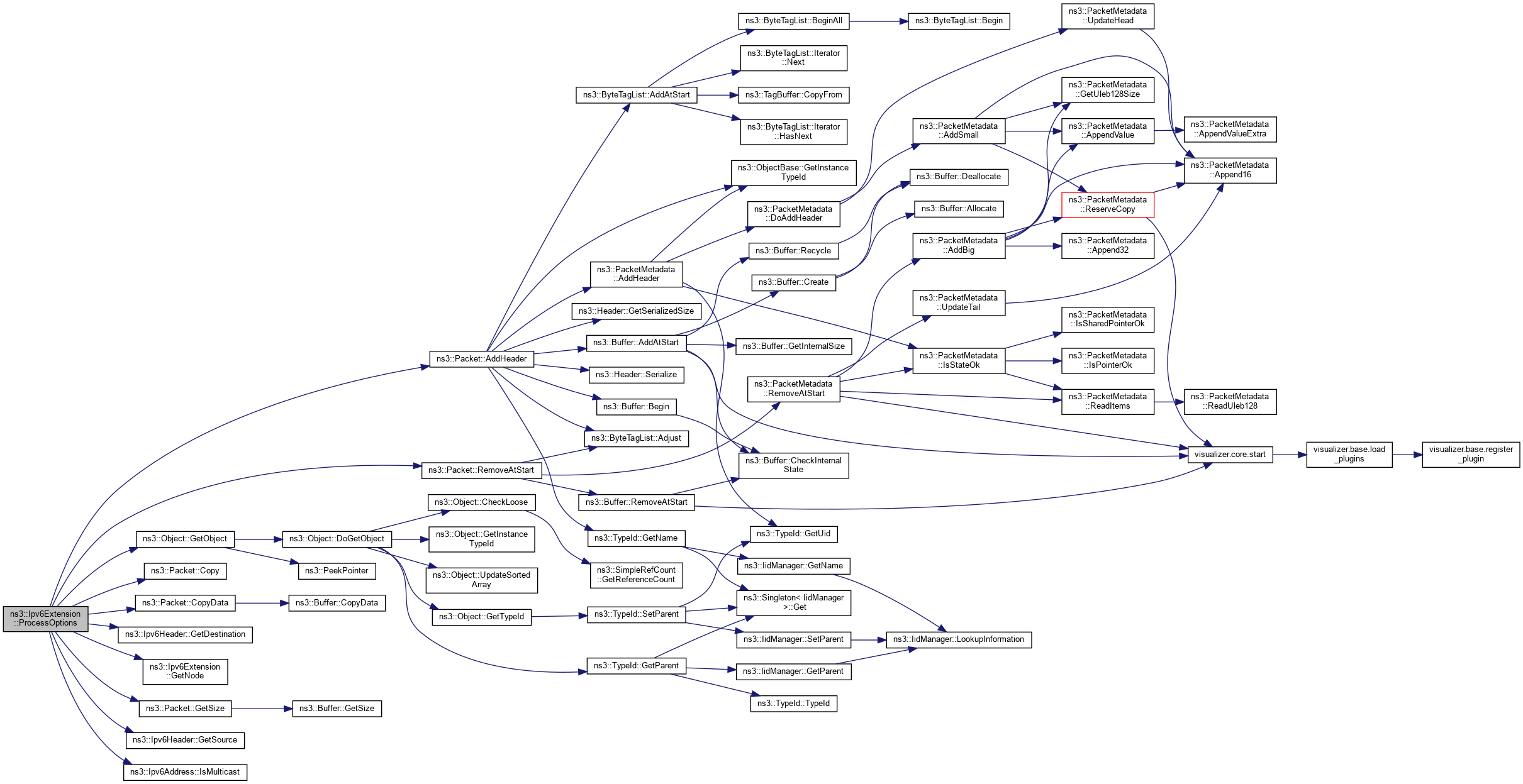 | virtual uint8_t | ProcessOptions (Ptr< Packet > &packet, uint8_t offset, uint8_t length, Ipv6Header const &ipv6Header, Ipv6Address dst, uint8_t *nextHeader, bool &stopProcessing, bool &isDropped, Ipv6L3Protocol::DropReason &dropReason) |